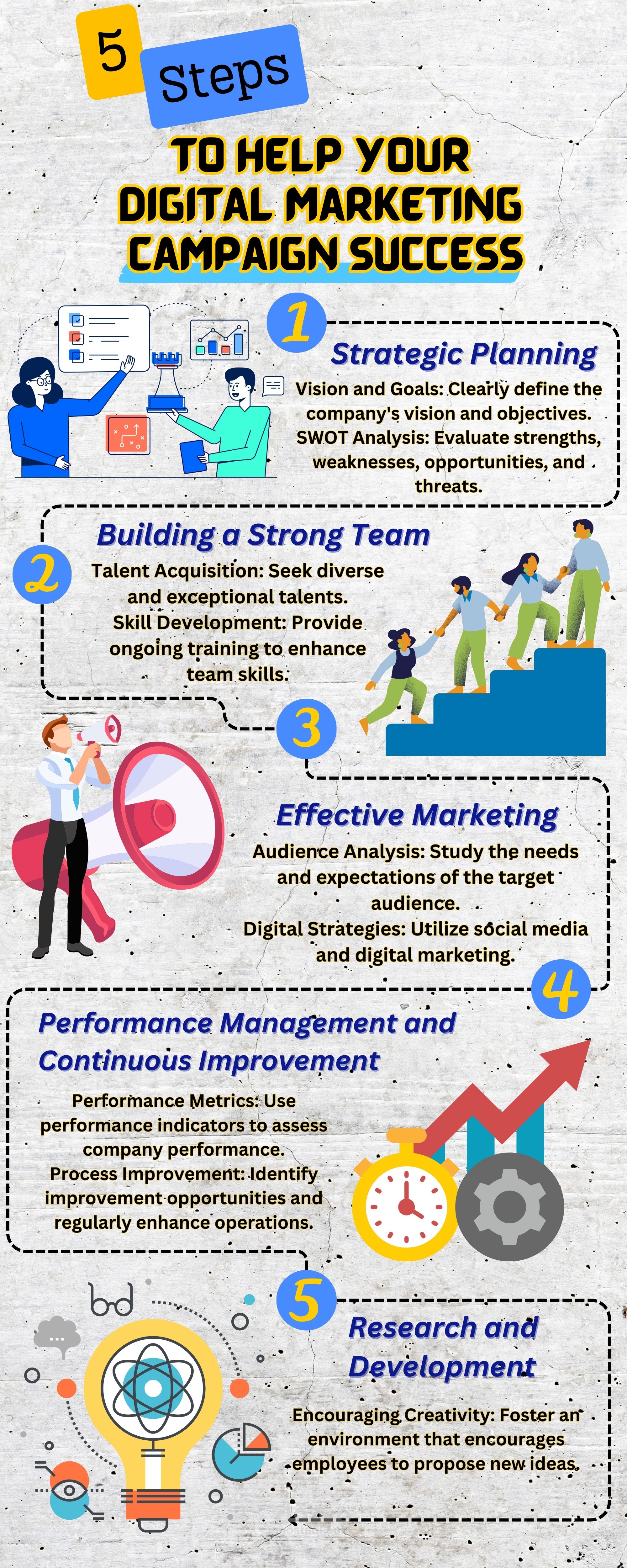 تصميم إنفوجرافيك عبارة عن 5 خطوات لنجاح شركات التسويق والمبيعات