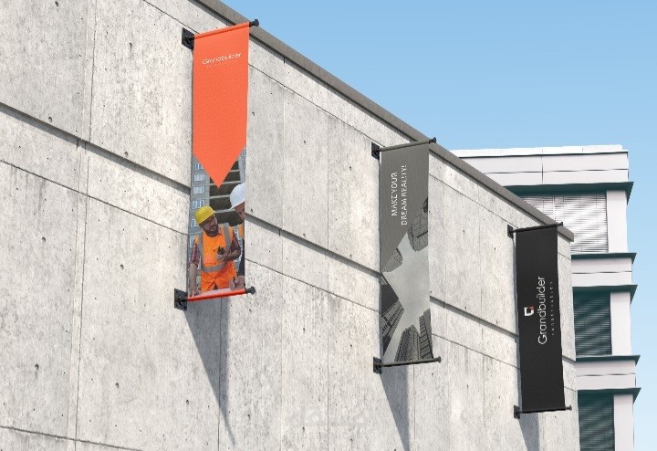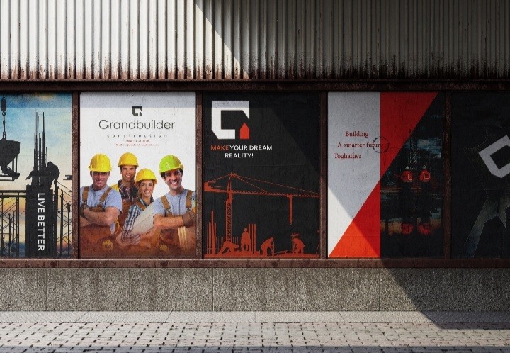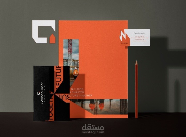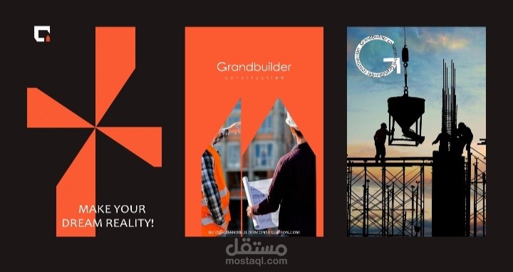 Grandbuilder شركة إنشاءات ومقاولات تم استخدام اللوغو ليرمز إلى الرافعة وسهم صغير لرفع المباني العالية وكل هذا على شكل حرف G