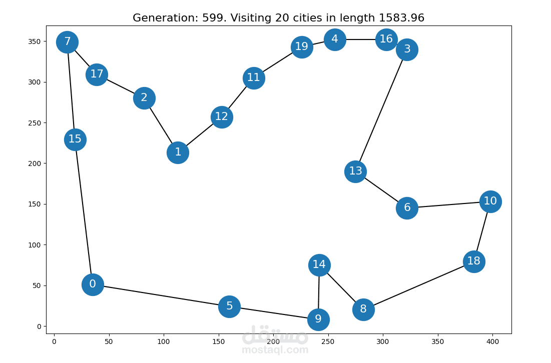 يستفيد هذا المشروع من قوة الخوارزميات الجينية (GAs) لإيجاد حلول شبه مثالية لـ TSP. الخوارزميات الجينية مستوحاة من عملية الانتقاء الطبيعي والتطور. إنهم يعملون عن طريق محاكاة مبادئ التنوع الجيني، والاختيار، والتكاثر لتحسين مجموعة الحلول المحتملة بشكل متكرر.