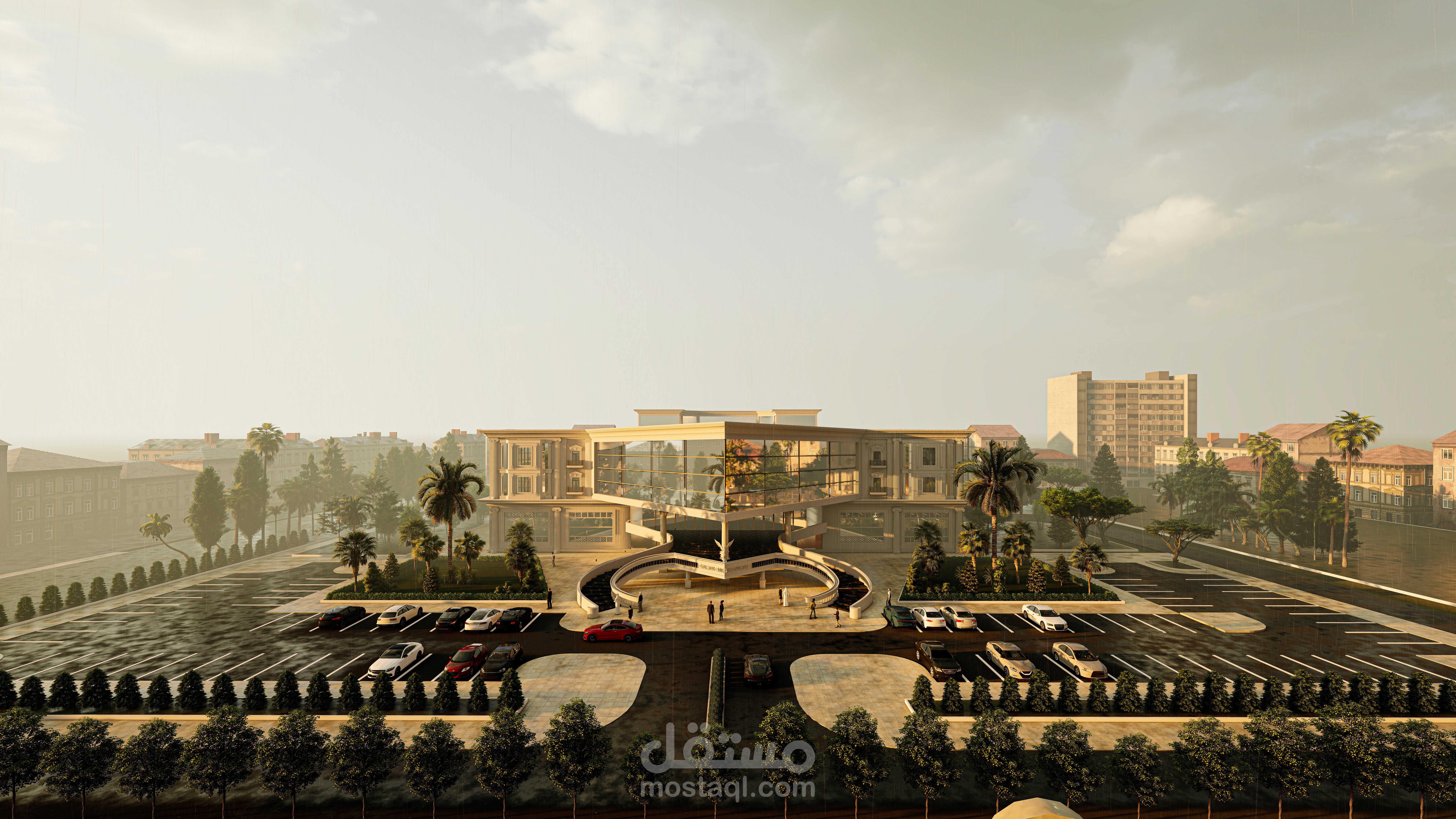 تم تصميم المحكمة خارجياً (تصميم 3d ) بالطراز الكلاسيكي الحديث و حل المساقط المعمارية (مساقط 2d ) مع مراعاة كافة المعايير والحلول الخاصة في تصميم المحاكم