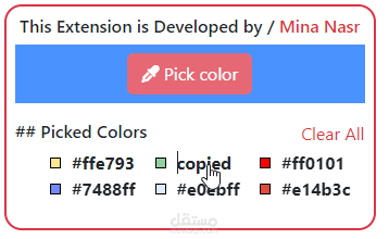 تصميم اضافة لجوجل كروم تقوم بالتقاط اى لون على الشاشة و تخزينة و امكانية نسخة