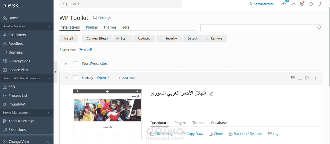 تم نقل موقع لمنظمة الهلال الأحمر العربي السوري بالكامل من استضافة بواجهة Cpanel الى استضافة أخرى بواجهة plesk