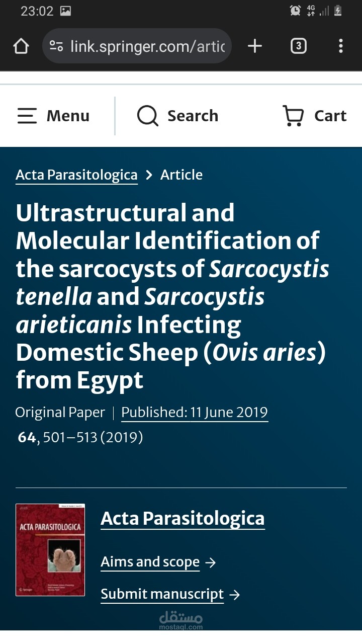 Ultrastructural and Molecular Identification of the sarcocysts of Sarcocystis tenella and Sarcocystis arieticanis Infecting Domestic Sheep (Ovis aries) from Egypt