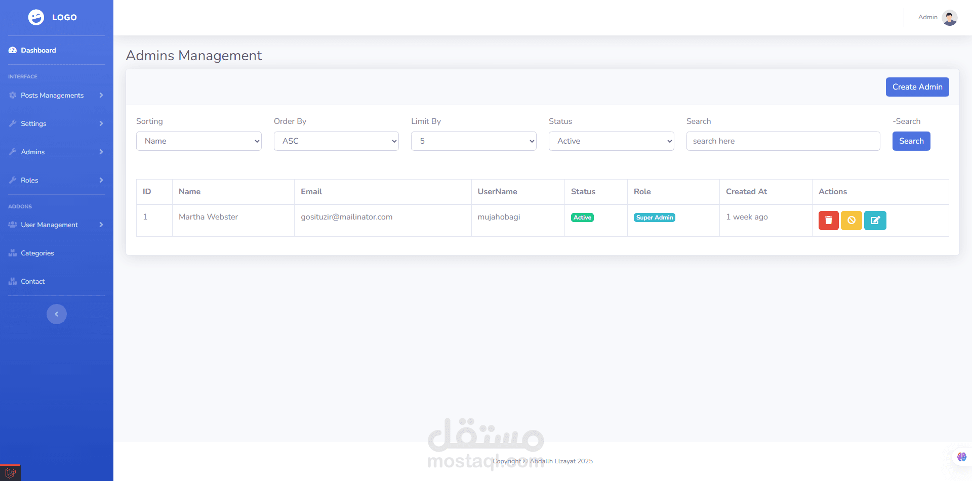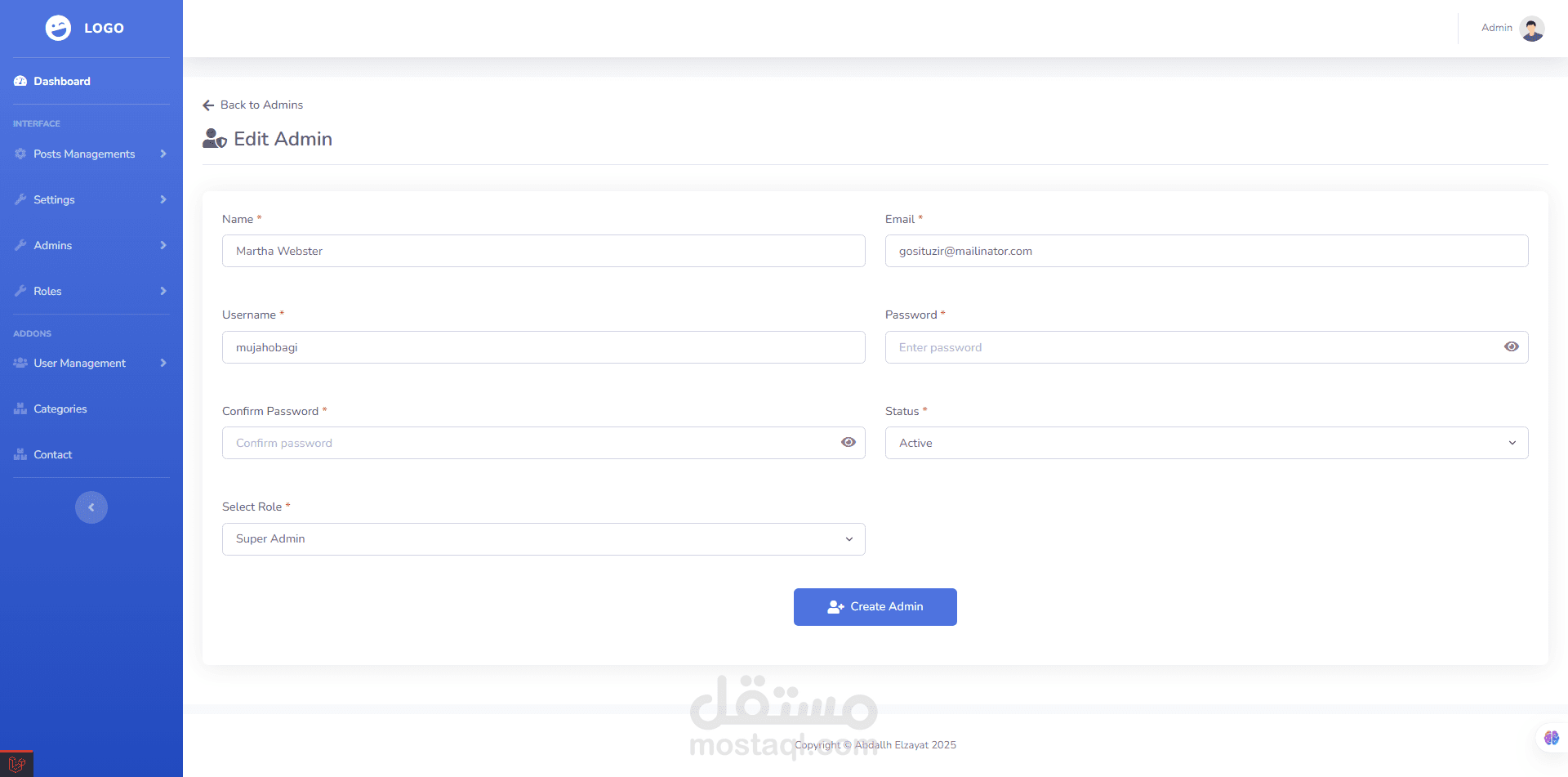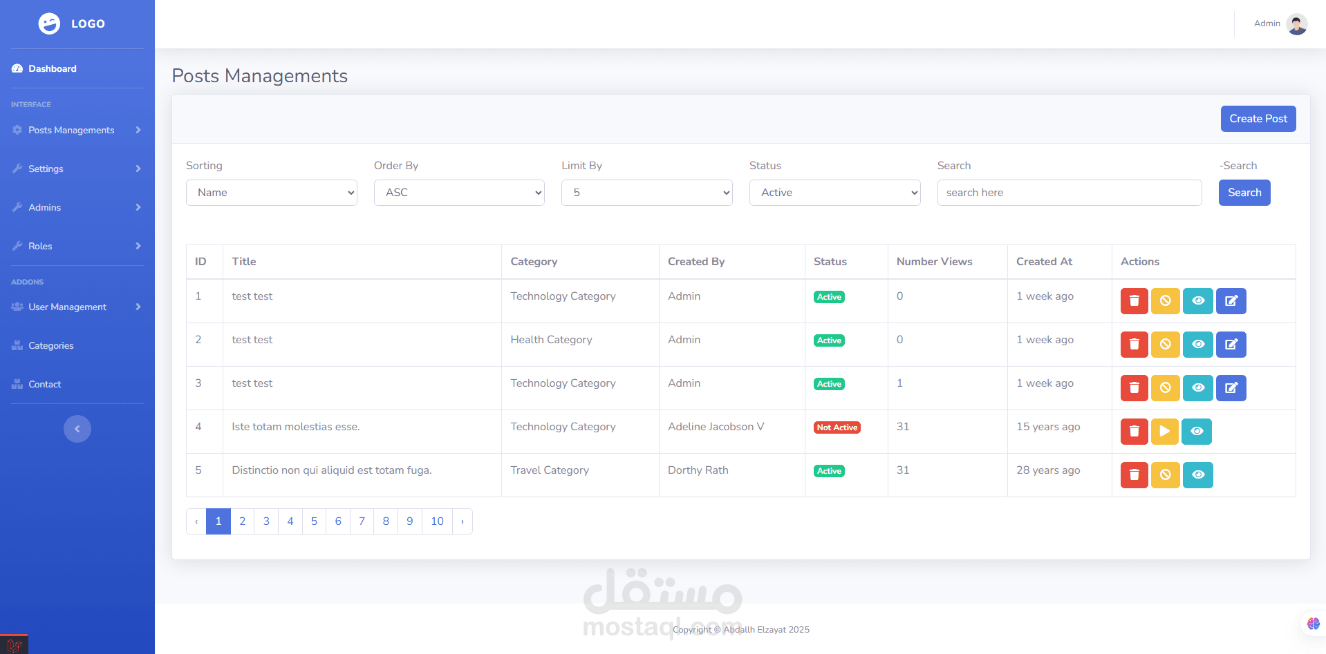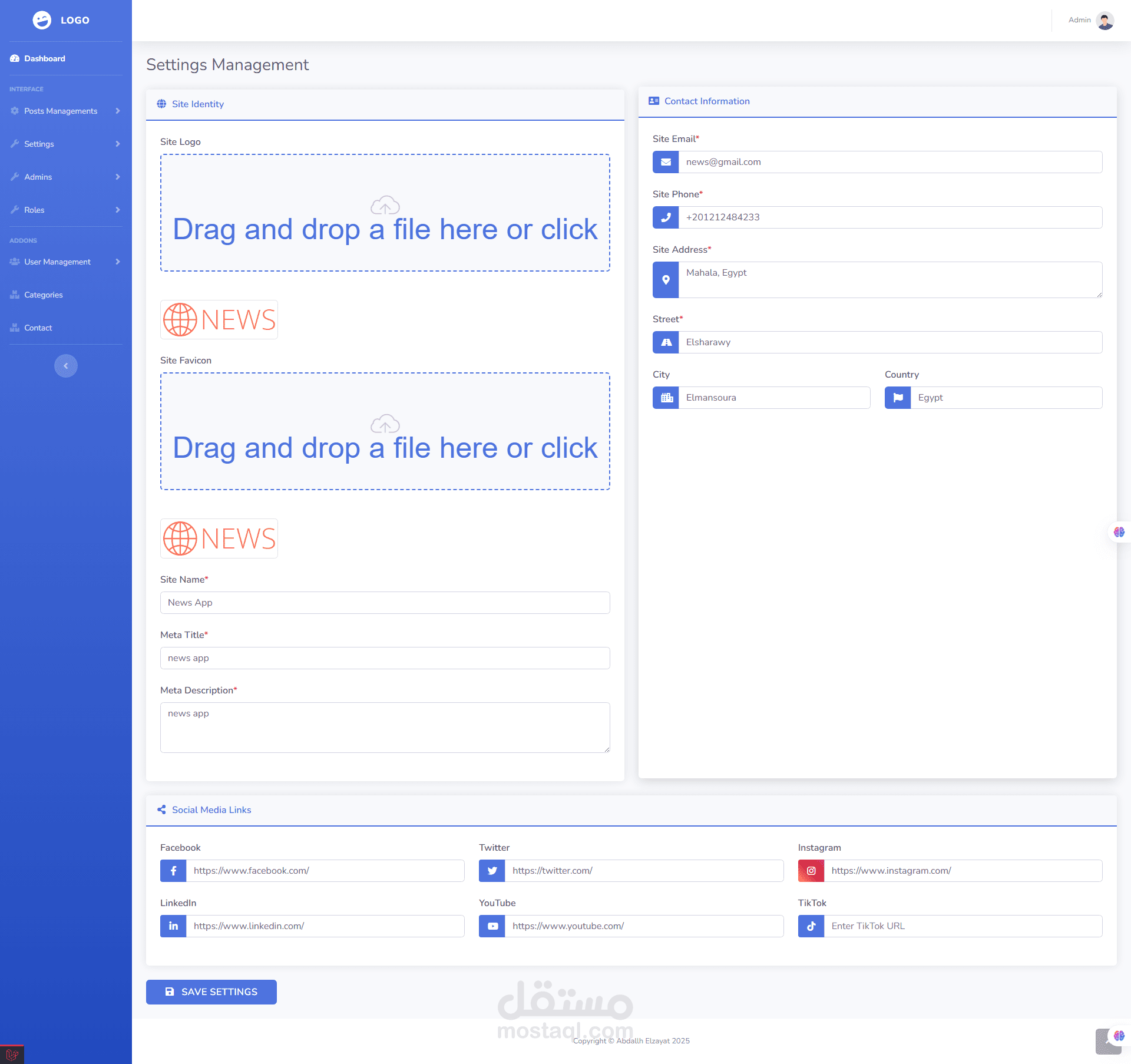 قمت ببناء نظام مدونة متكامل باستخدام Laravel يتميز بلوحة تحكم قوية وصلاحيات مرنة لتسهيل إدارة المحتوى والمستخدمين بكفاءة عالية.