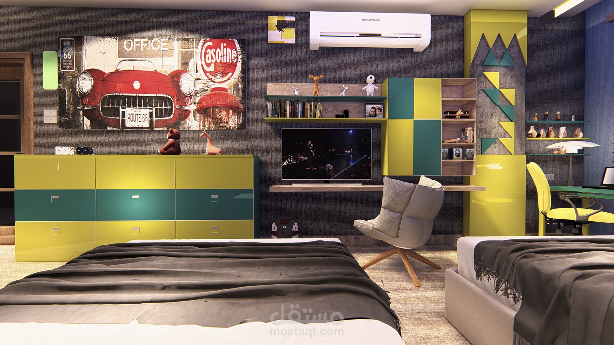 غرف نوم اولاد لابد ان يكون تصميم الديكور فيها مختلفاً عن باقي الغرف, سواء كانت في عمر صغير او كبير, فدائما يملن الفتيات الي الوان محددة من الديكورات.وكذلك الاولاد