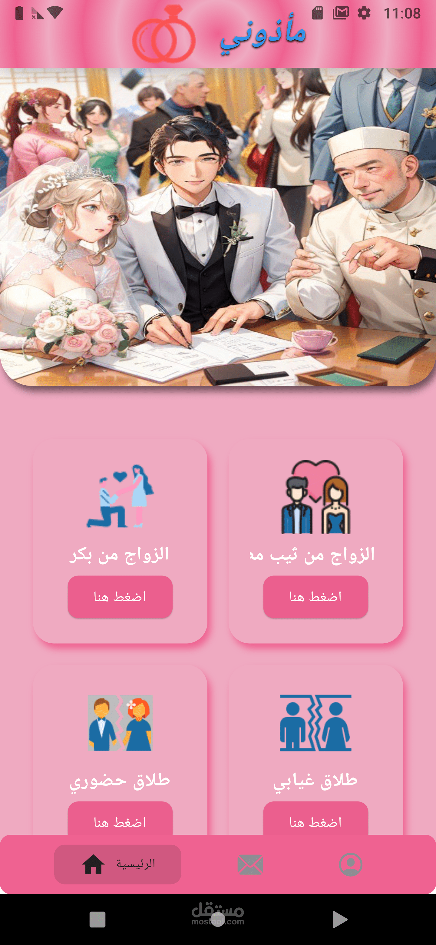 حيث يتيح للمستخدمين امكانية اخذ موعد من المأذون او طلب المأذون الى المنزل لإتمام العمل