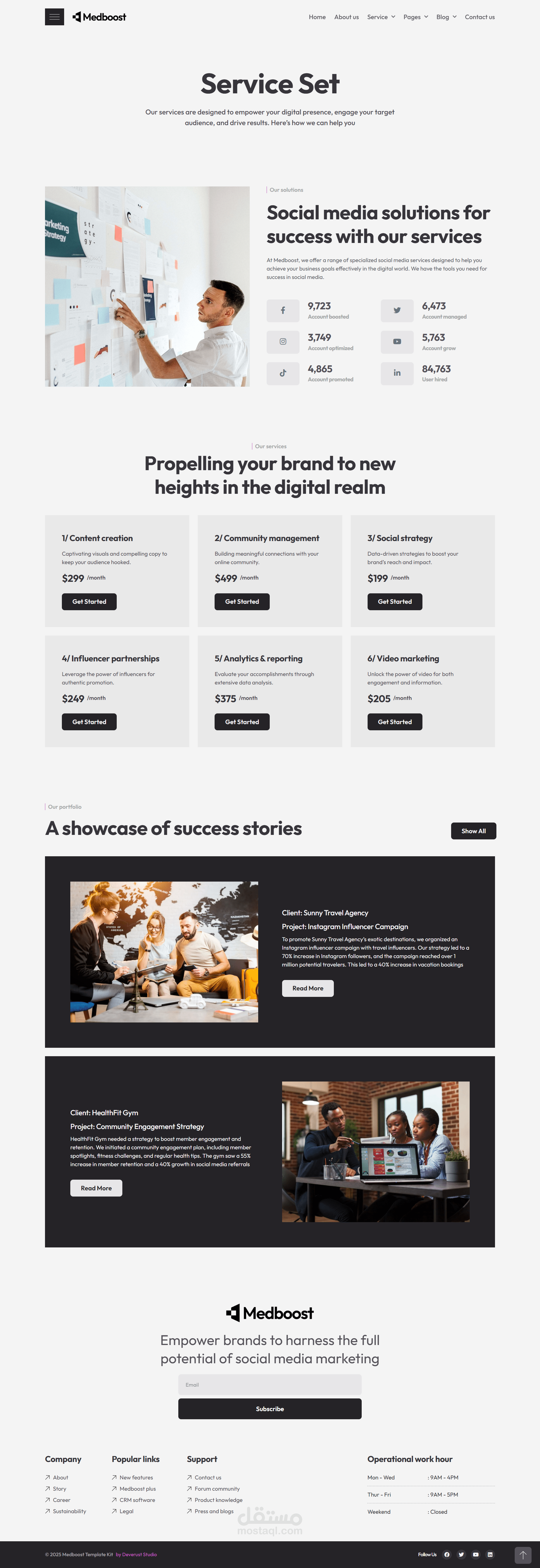 موقع وكالة تسويق رقمي متخصصة في الحملات الإبداعية، استراتيجيات الإعلانات الممولة المخصصة، والتحليل المبني على البيانات. تم تطويره باستخدام ووردبريس وElementor، بتصميم عصري ومتجاوب مع جميع الأجهزة (كمبيوتر، تابلت، وجوال). يتميز بسرعة التحميل وبنية متوافقة مع محركات البحث، ويعكس أسلوب الوكالة المبتكر والموجه نحو النتائج.