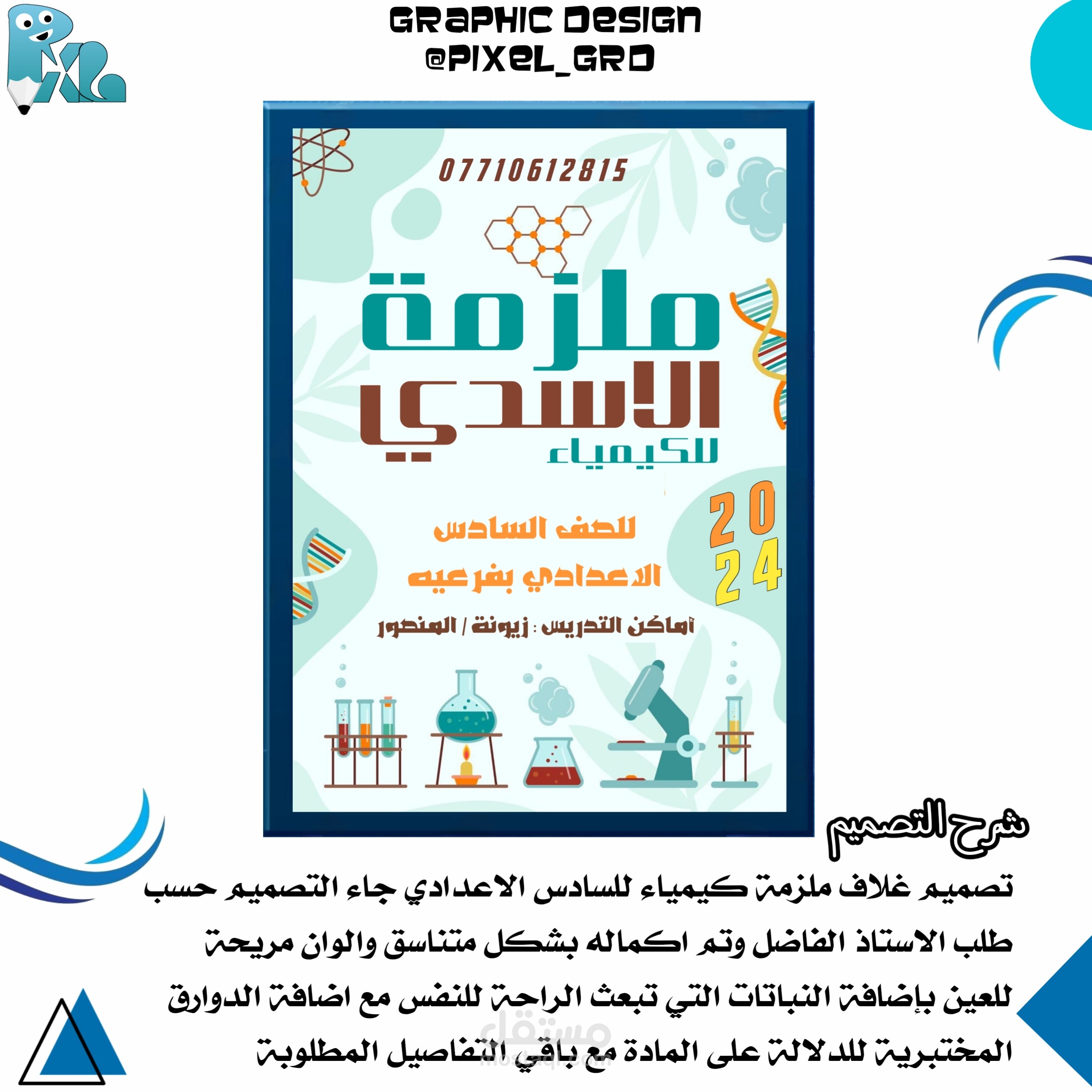 جاء التصميم بشكل احترافي متناسق مع مراعاة قواعد التصميم والاهم الشكل الجذب المناسب لجذب العملاء واعطاء صورة اكادمية جميلة تليق بالمدرس وتجذب الطلاب لشراء ملزمته
