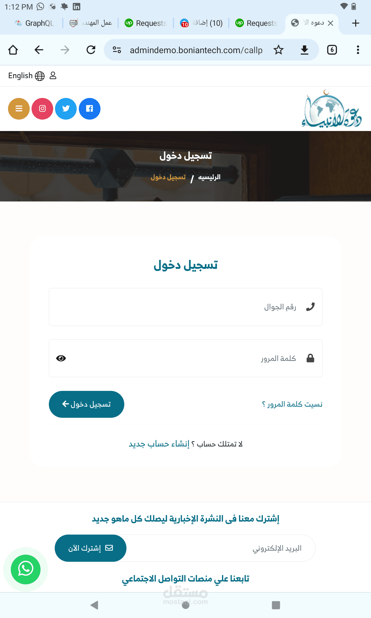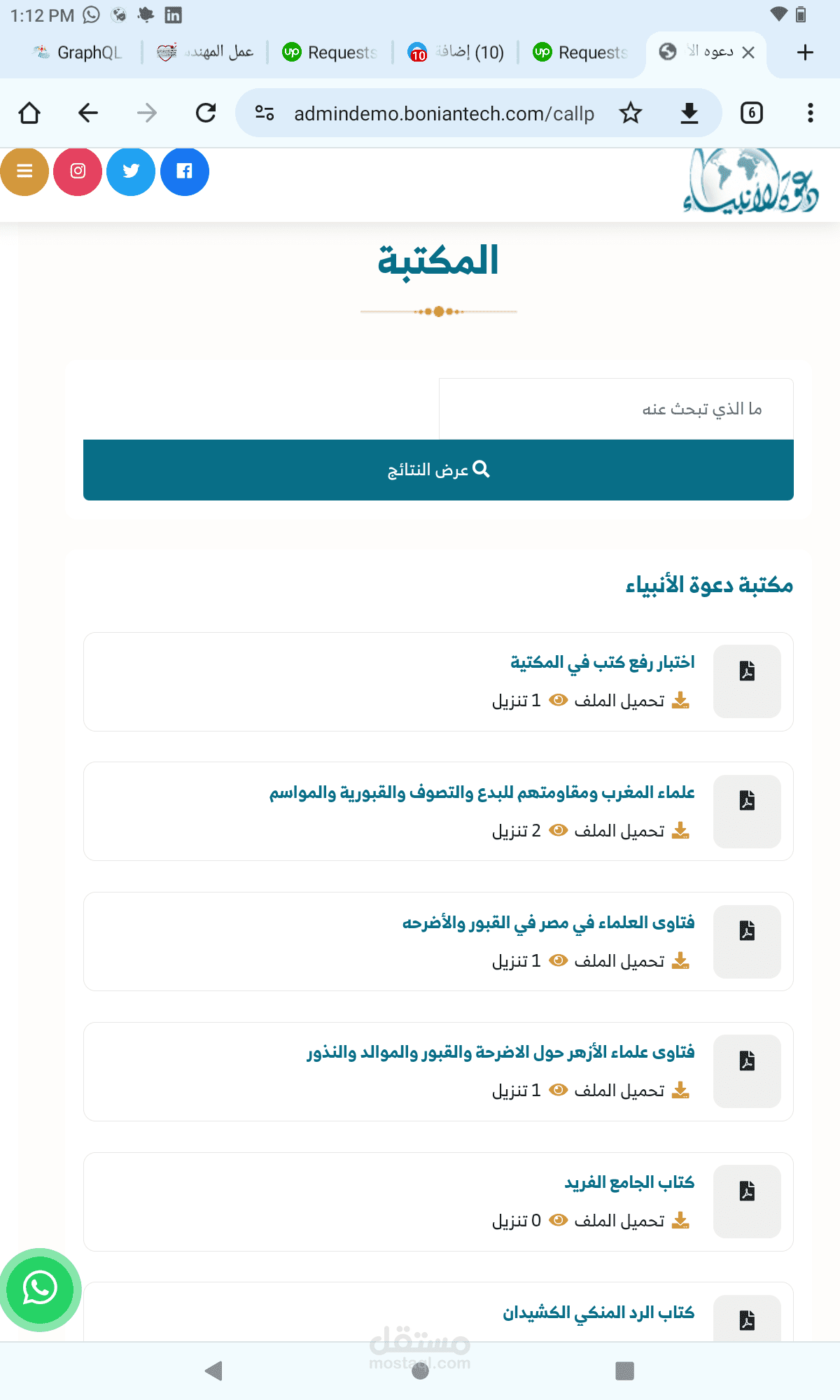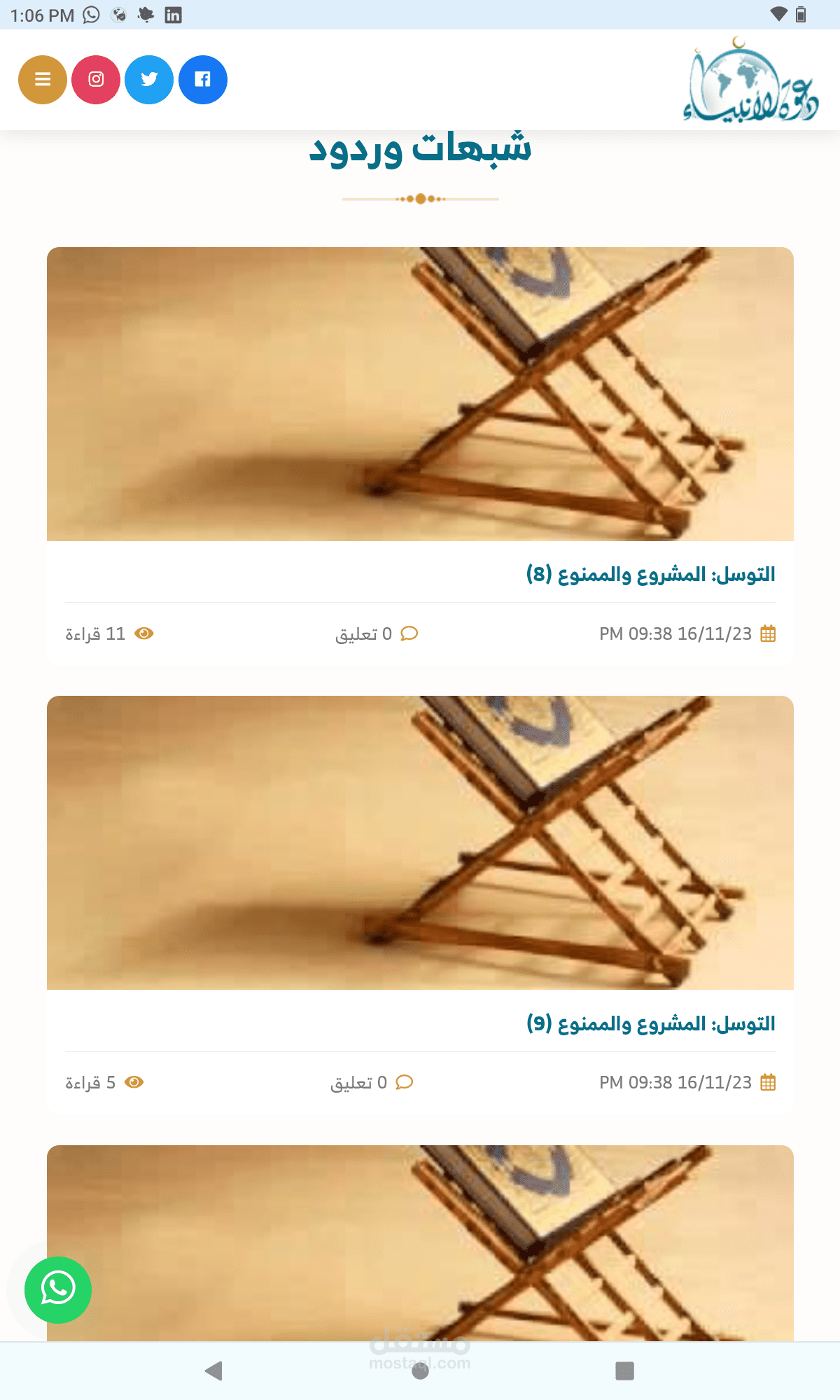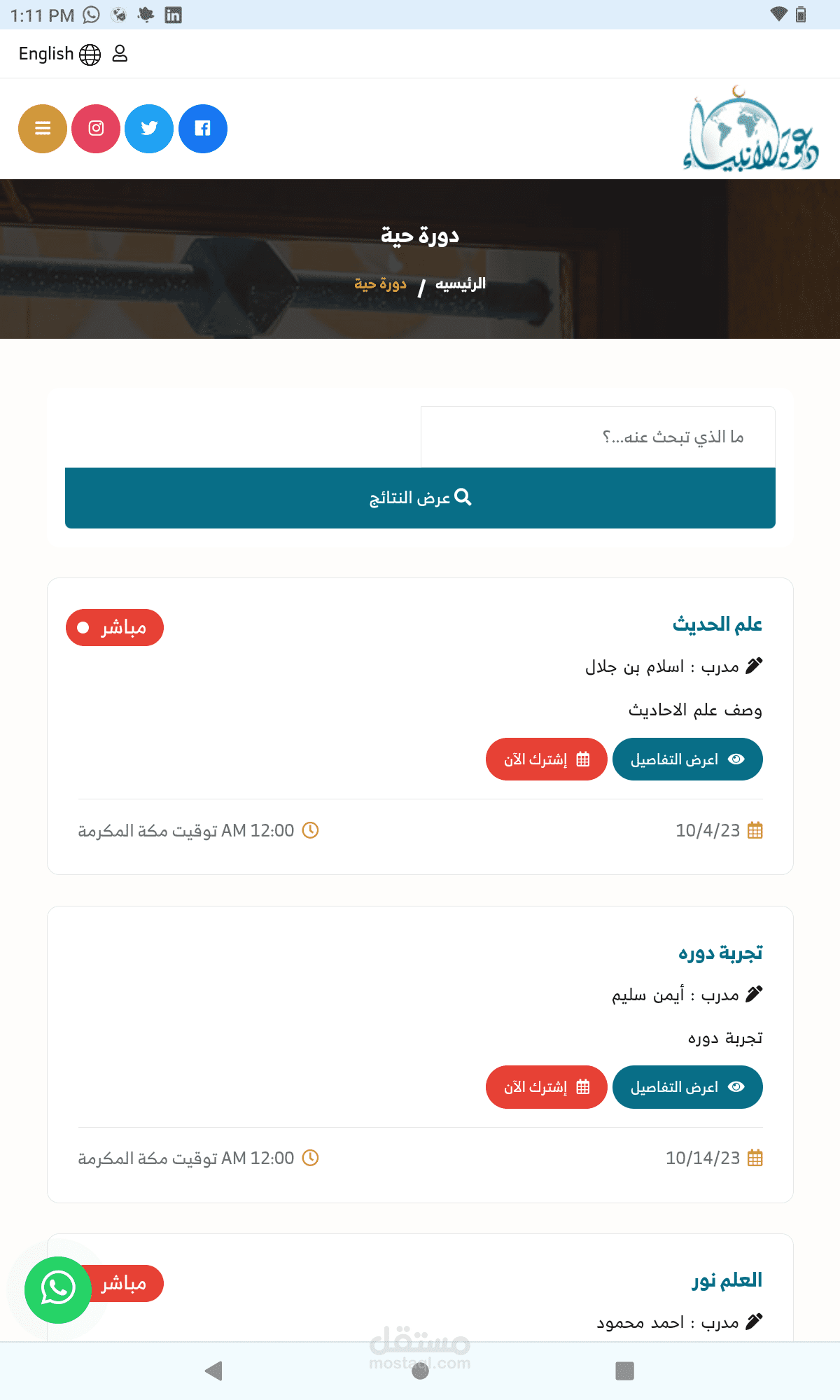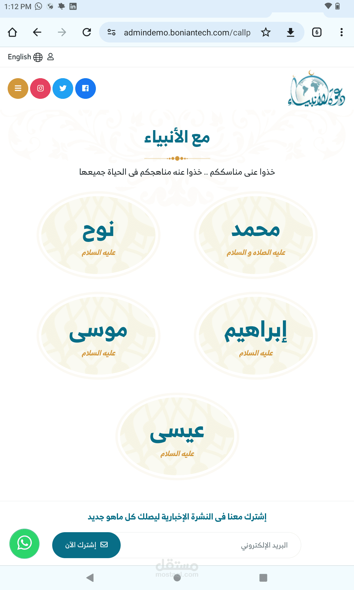 موقع مع الانبياء هو موقع دعوى سعودي قائم على تقديم المقالات الدينيه وتوفير الاستشارات للمستخدمين بالاضافه الى الدورات الدينيه الحيه والمسابقات الدينيه مع مكتبه ضخمه من الكتب المفيده, مع لوحه تحكم كامله لكل شىء فى الموقع تم تطوير هذا التطبيق تحت إشرافي مع الفريق الخاص.