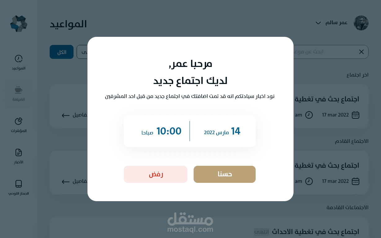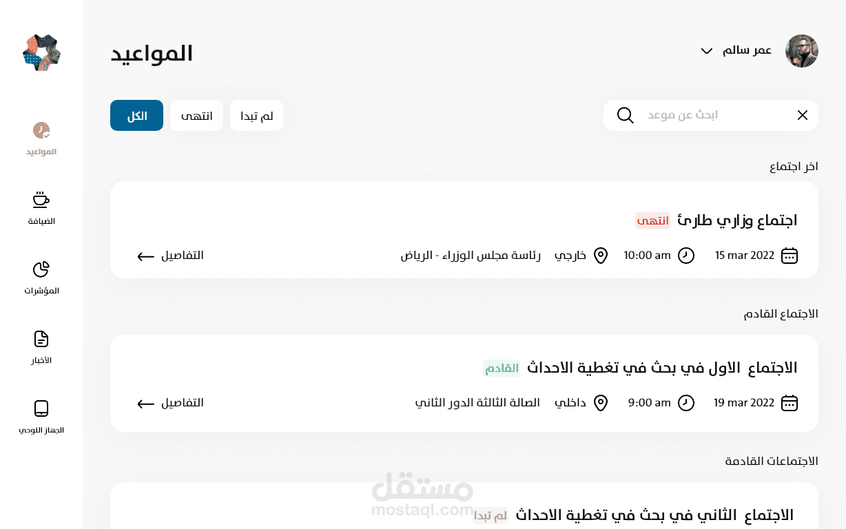 The NEOM project on the iPad is a specialized application designed for high-ranking ministries and companies. It aims to organize meetings and scheduled appointments. These appointments are set by organizers and can be viewed and monitored by users on their tablets. Additionally, users can request hospitality services and order food or beverages from the kitchen.