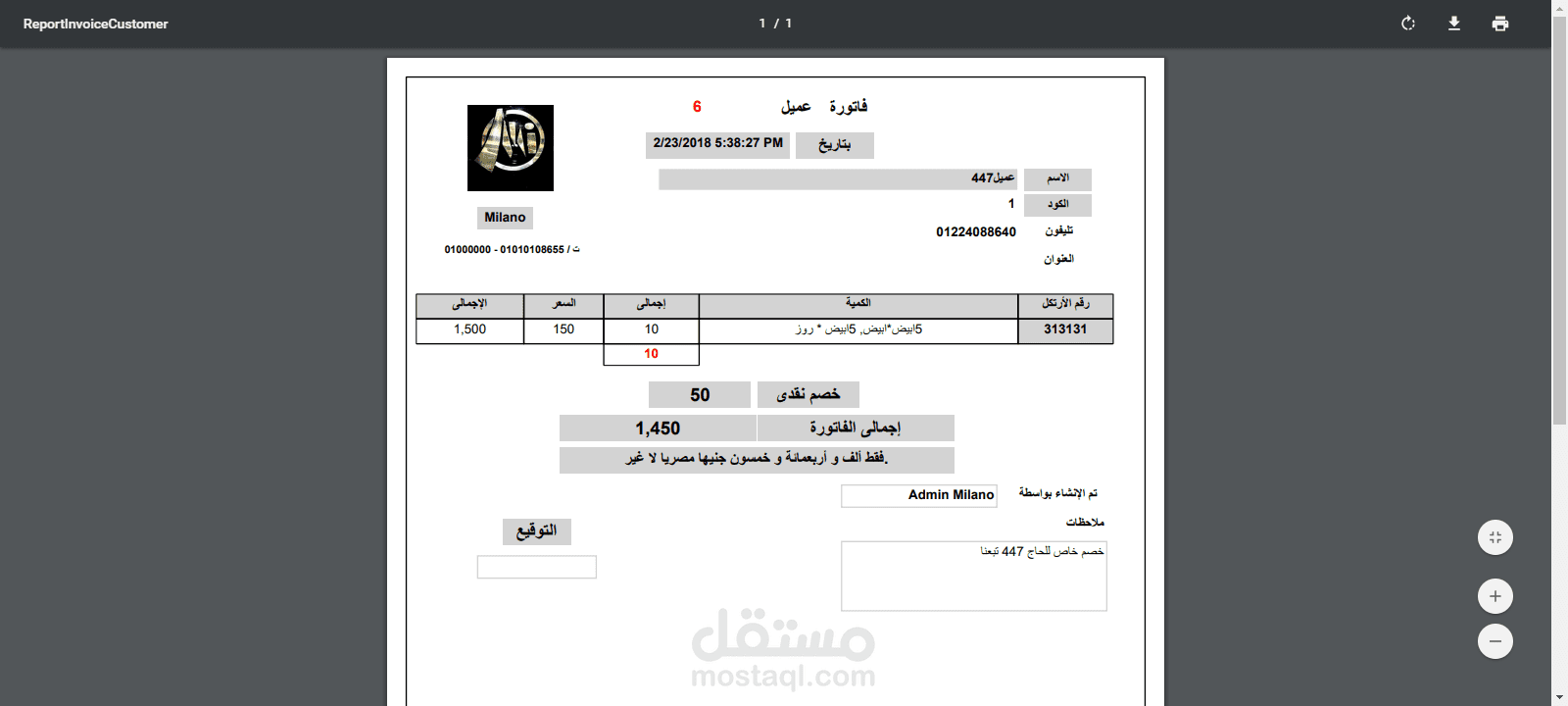 استخراج كافة التقارير عن كل مايخص المنشأة