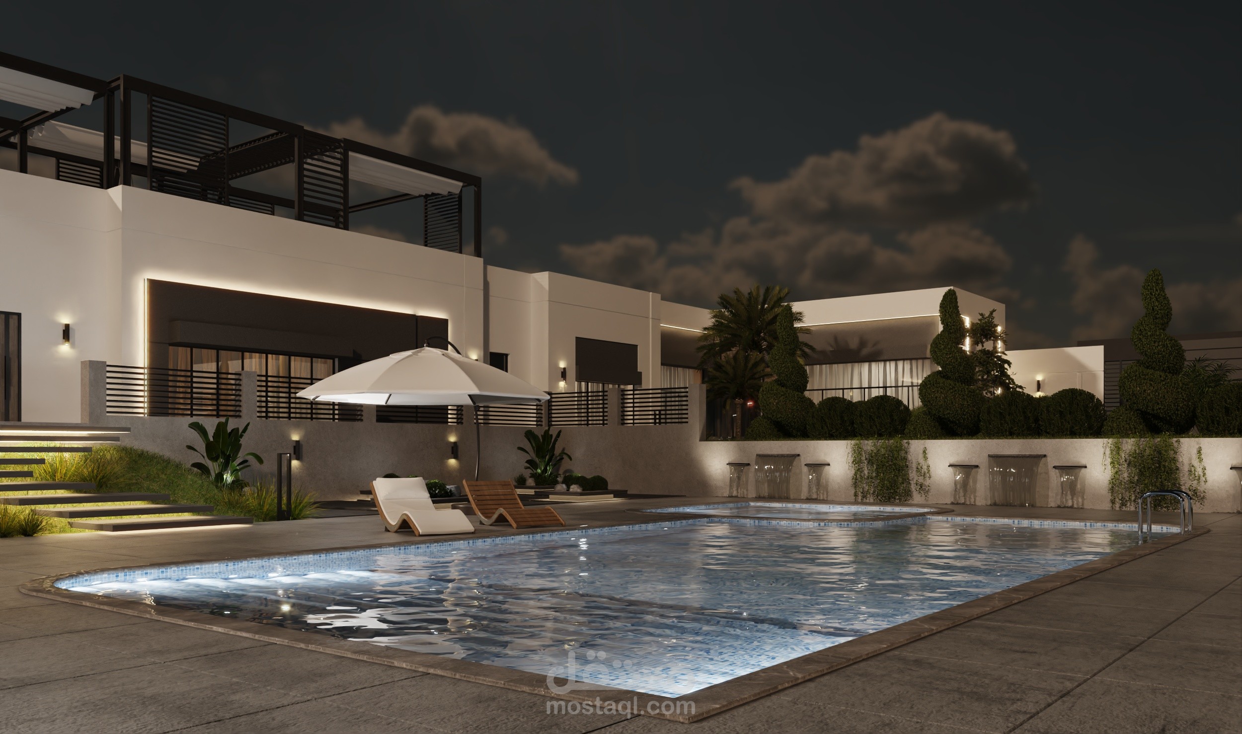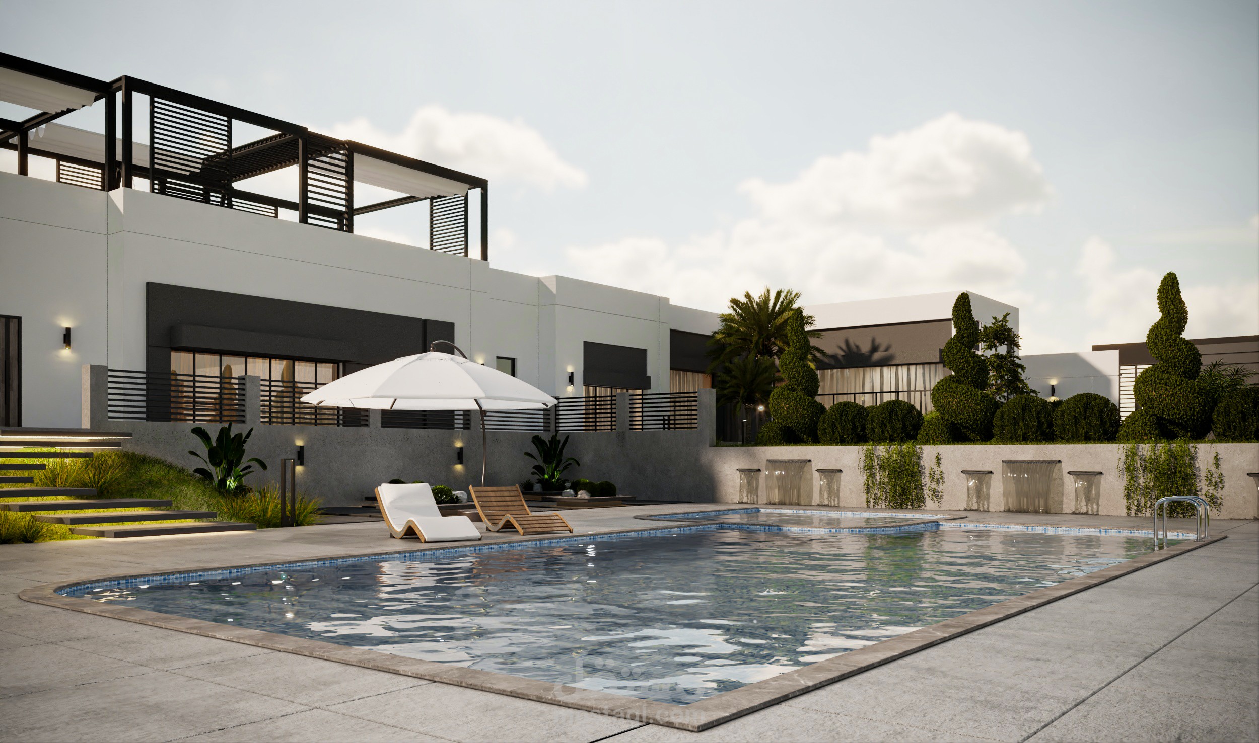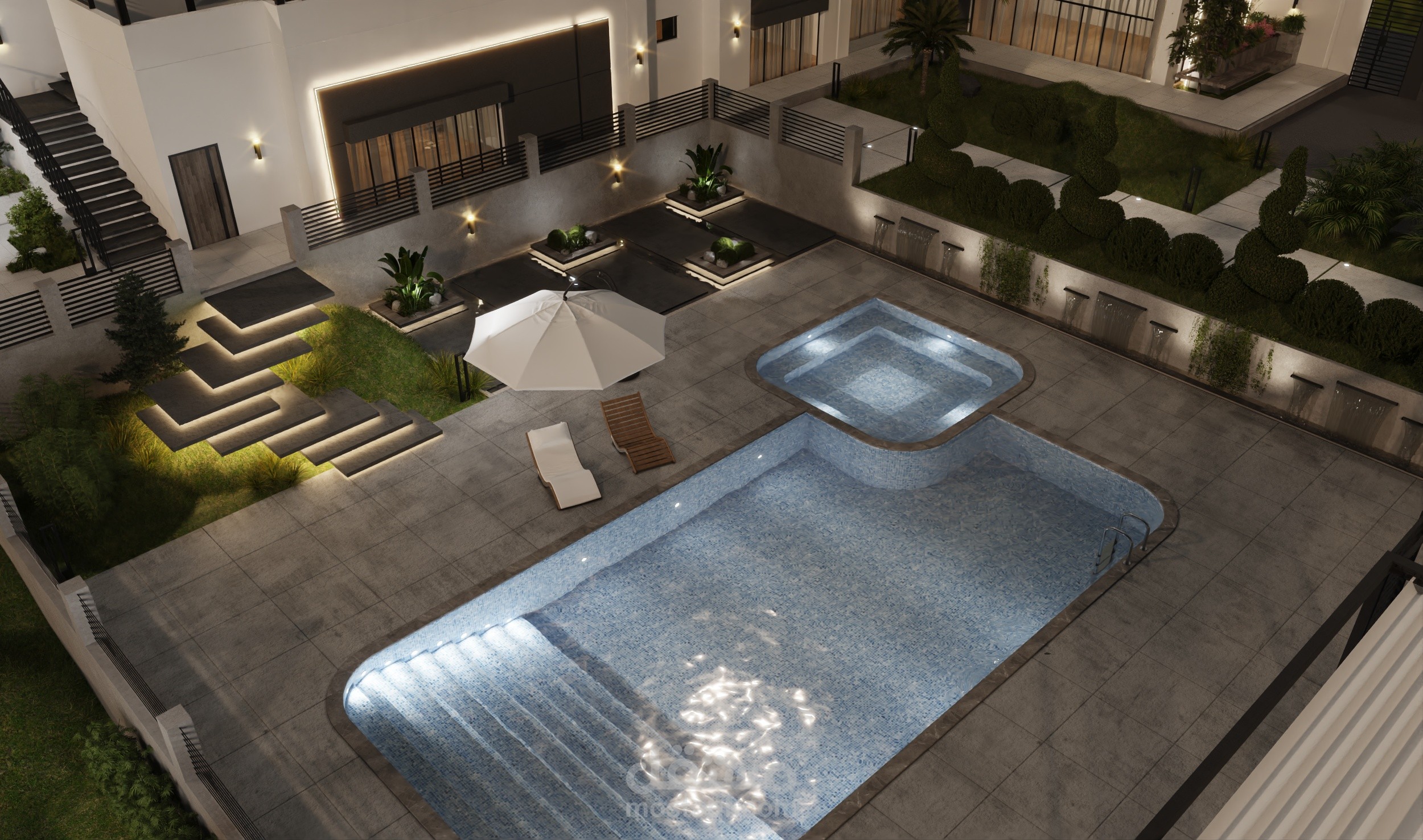 تصميم خارجي لواجهات و موقع عام لفيلا في دمشق