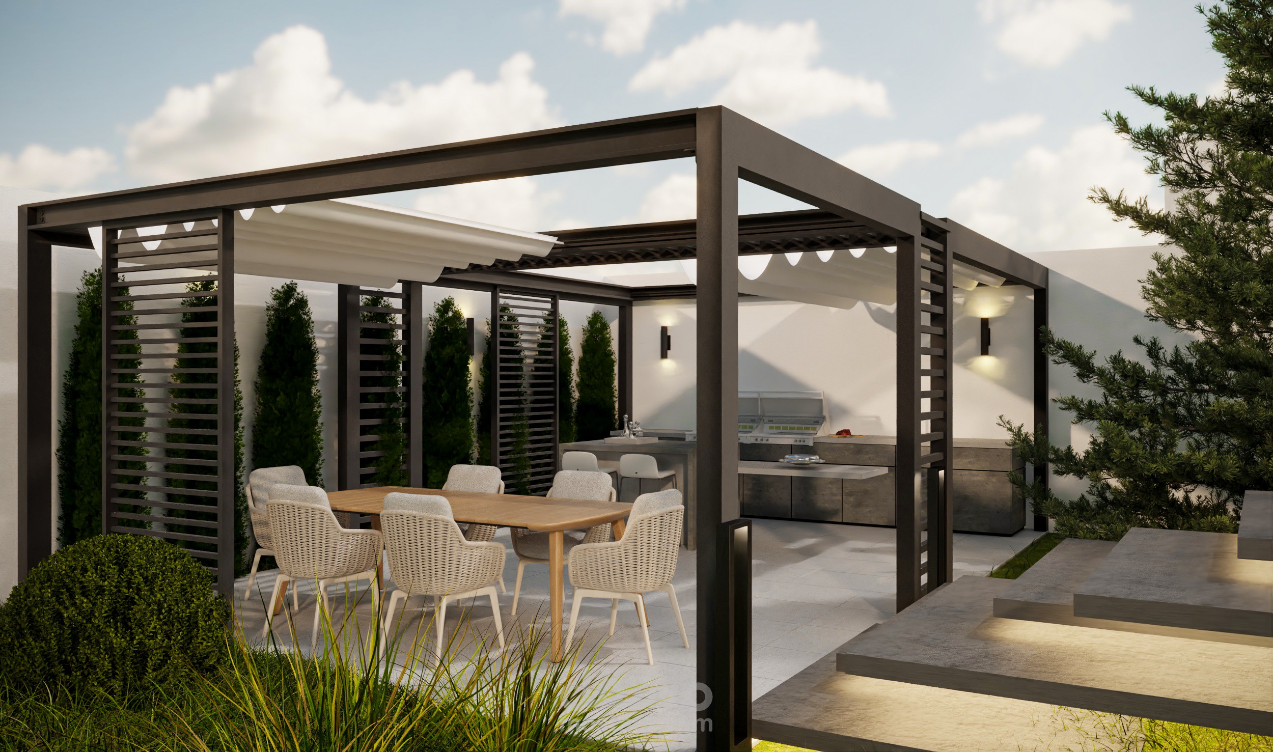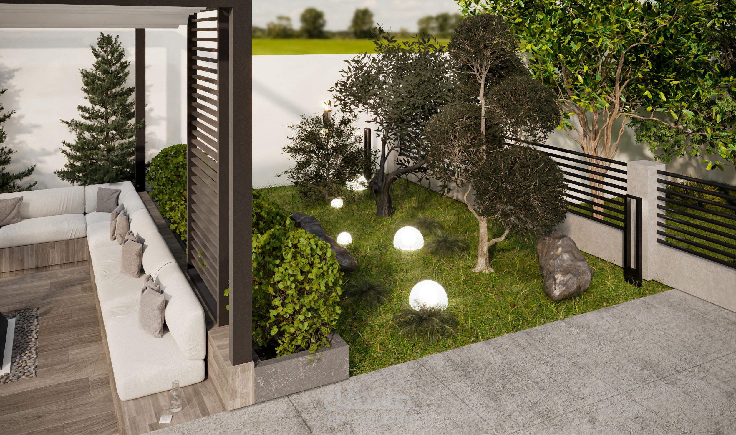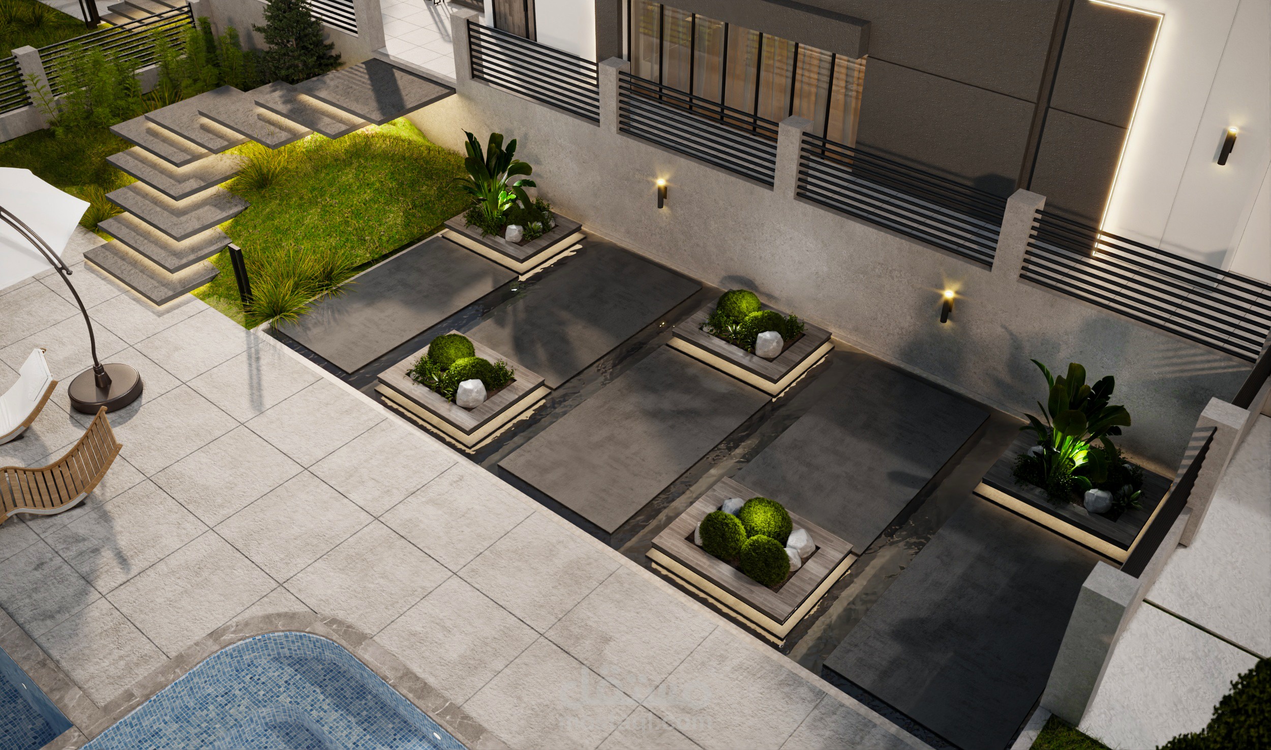تصميم خارجي لواجهات و موقع عام لفيلا في دمشق