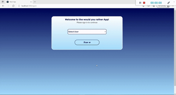 The "Would you rather game" is the final project for the react/redux nanodegree at udacity
