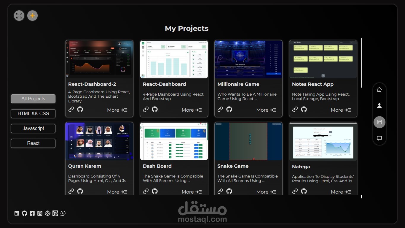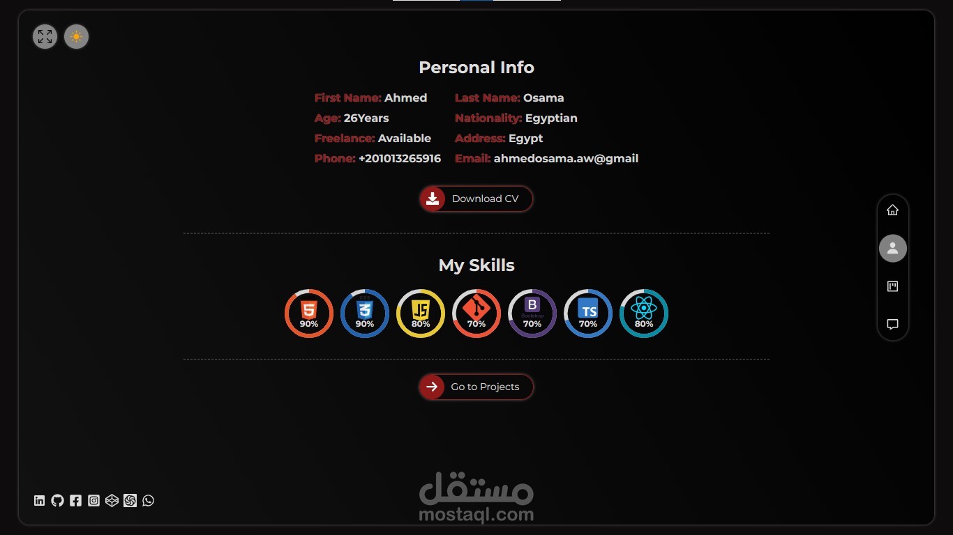 صفحة الشخصية تتميز بعدة مميزات، من بينها وضعيات العرض الليلية والنهارية، وواجهة ملؤها الشاشة بتصميم متجاوب وجاذب لجميع الأحجام الشاشة. يحتوي المشروع على كافة التفاصيل الضرورية، بما في ذلك الروابط الوظيفية ومعرض الأعمال. يُتيح الموقع أيضًا إمكانية إرسال رسائل عبر البريد الإلكتروني، مما يسهل التواصل وتحقيق تجربة تفاعلية مميزة.