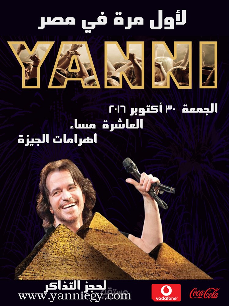 تصميم دعاية لحفلة - تجريبي---- للمسيقار ياني في الاهرامات بمصر و التصميم عبارة عن فيس بوك بوستر و تذكرة و بوستر حائط