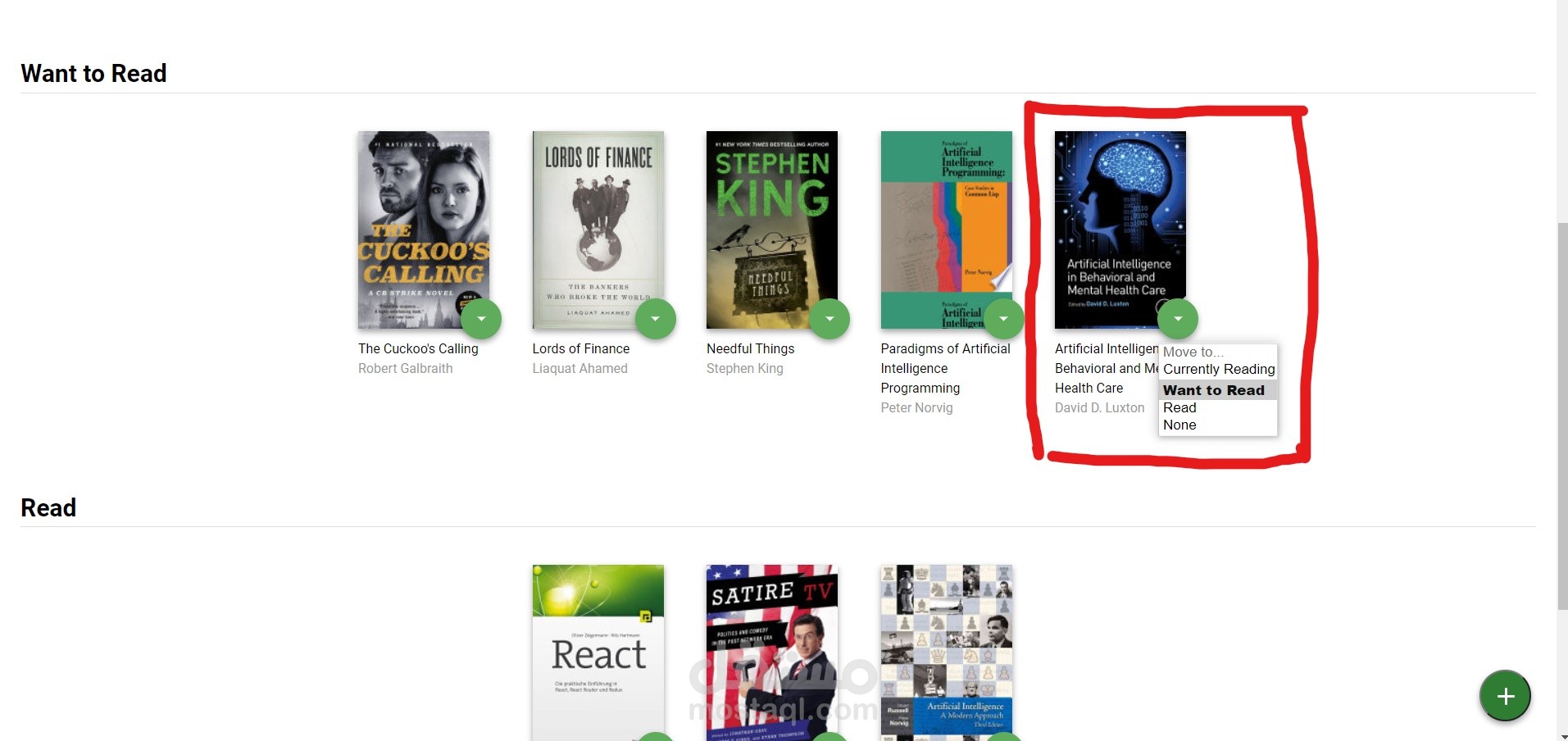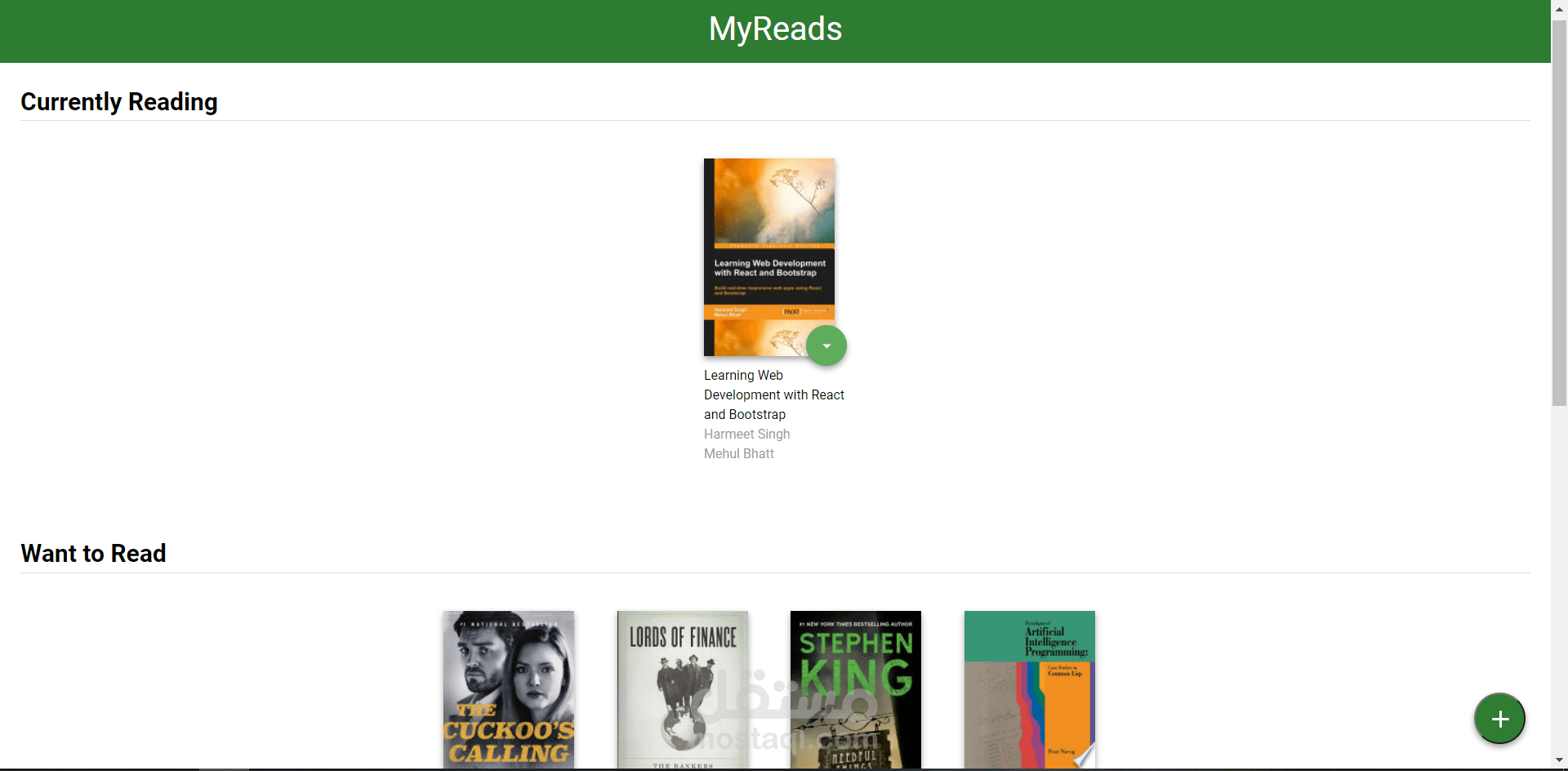 هذا مشروع لدورة React Fundamentals الخاصة بـ udacity. الهدف من هذا المشروع هو إنشاء تطبيق ويب يمكنه تتبع كتبك وحالتها، يمكنك البحث عن الكتب وإضافتها إلى فئات مختلفة، على سبيل المثال تقرأ حاليًا أو تقرأ أو ترغب في القراءة، الصفحة الرئيسية تعرض الكتب الموجودة في كل رف، يمكنك تحديث حالة الكتاب ونقله إلى رف مختلف من خلال القائمة المنسدلة في كل كتاب.