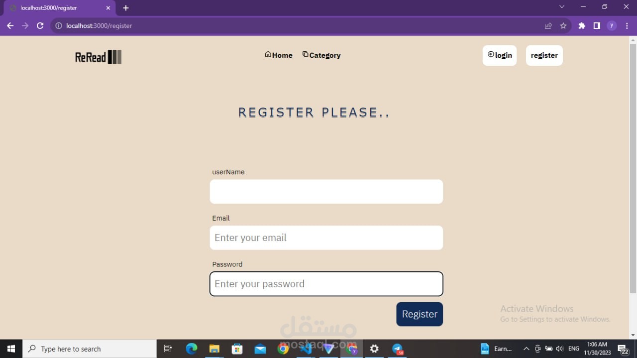 ▶️When user not log in he can watch home page that contain all posts and category that have all book and when select book apear for you all post related to it