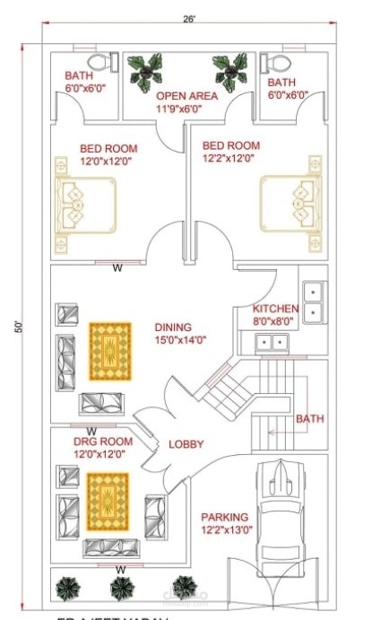 غرفتين نوم وغرفه بمسحه0'11×0'12 حمامين وحمام بمسحه 0'6×0'6 منطقة مفتوح 0'6 ×9'11مطبخ 0'8×0'8ومكان لأكل وجلس العائله 0'14×0'15 وغرفه معيشة 0'12×0'12 موقف لسيارة 0'13×2'12 و درج