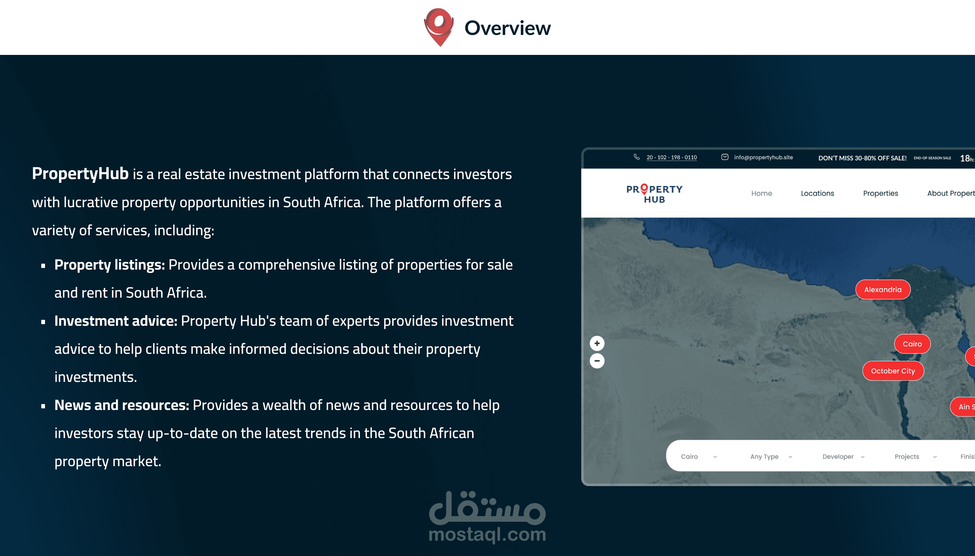 PropertyHub is a real estate investment platform that connects investors with lucrative property opportunities in Egypt. The platform offers a variety of services.