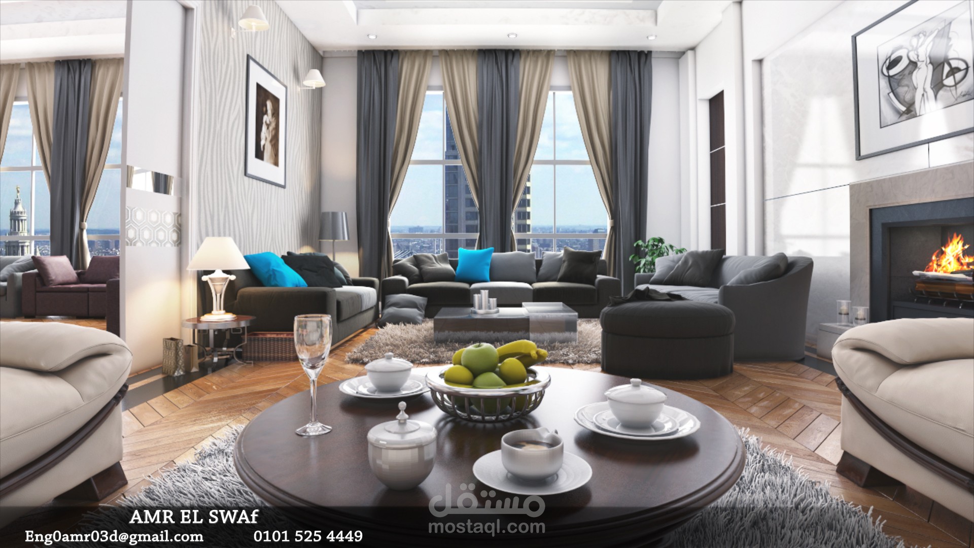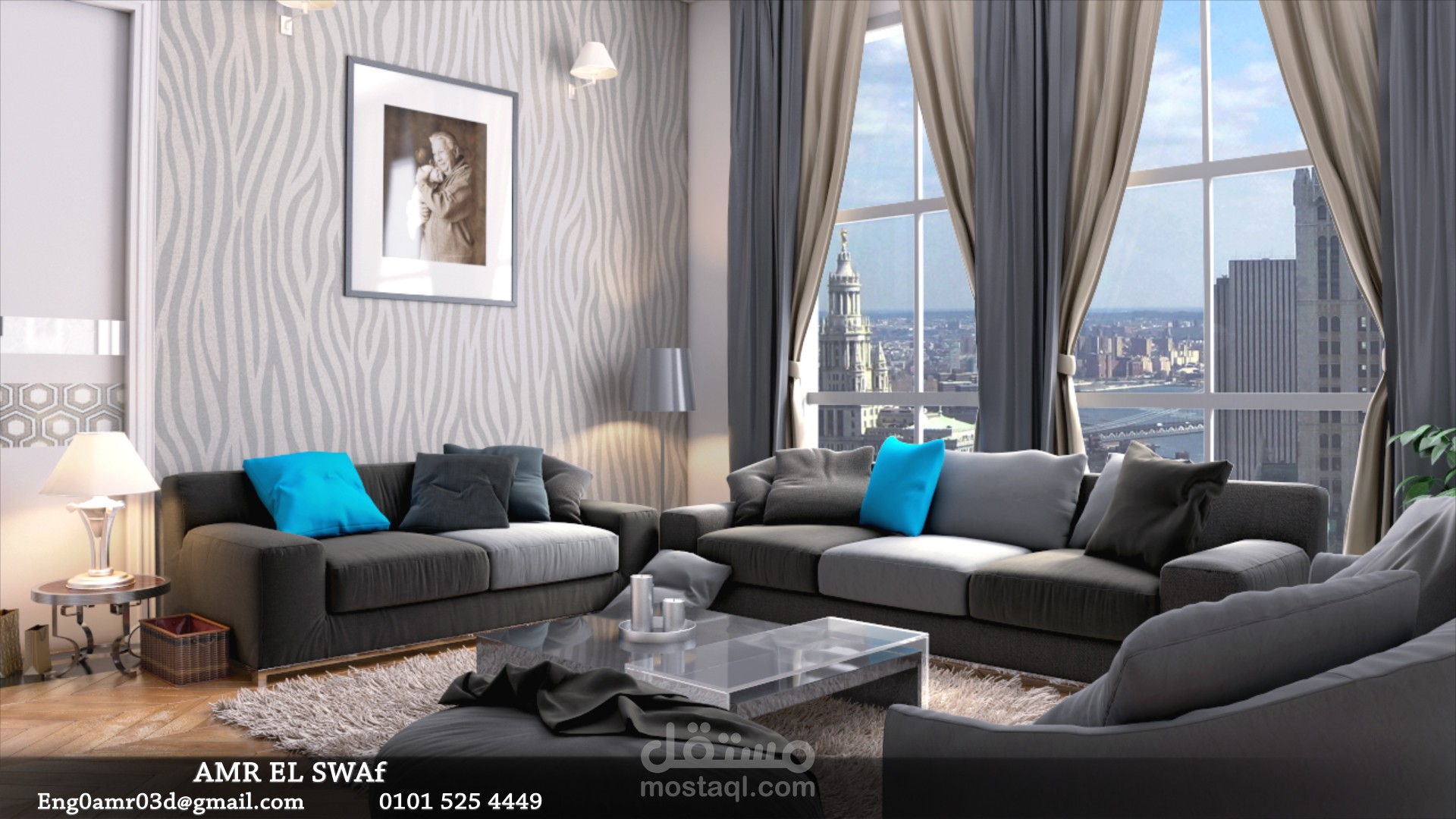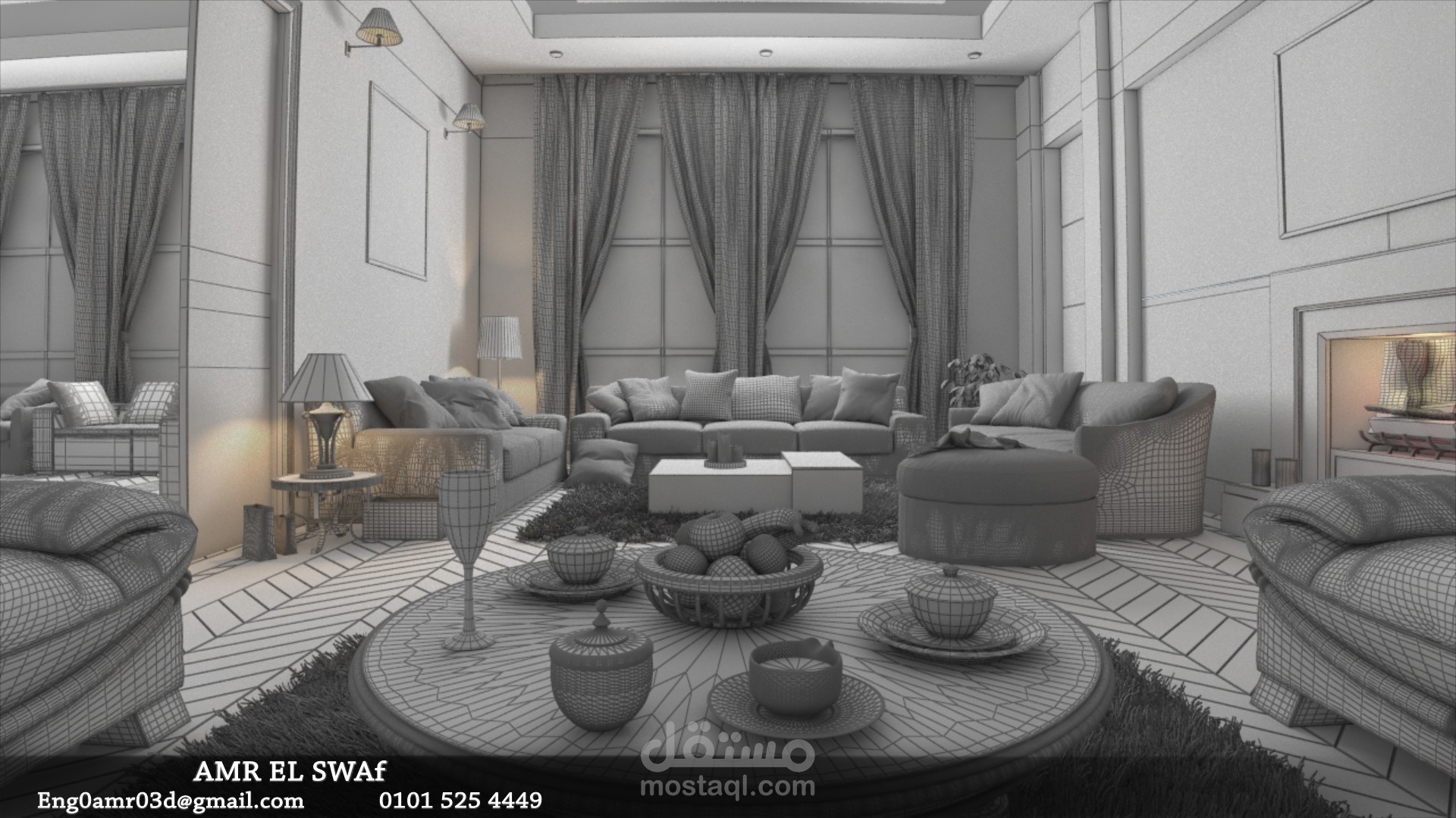 عمل غرفة استراحة ثرى دى من الطراز المودرن
