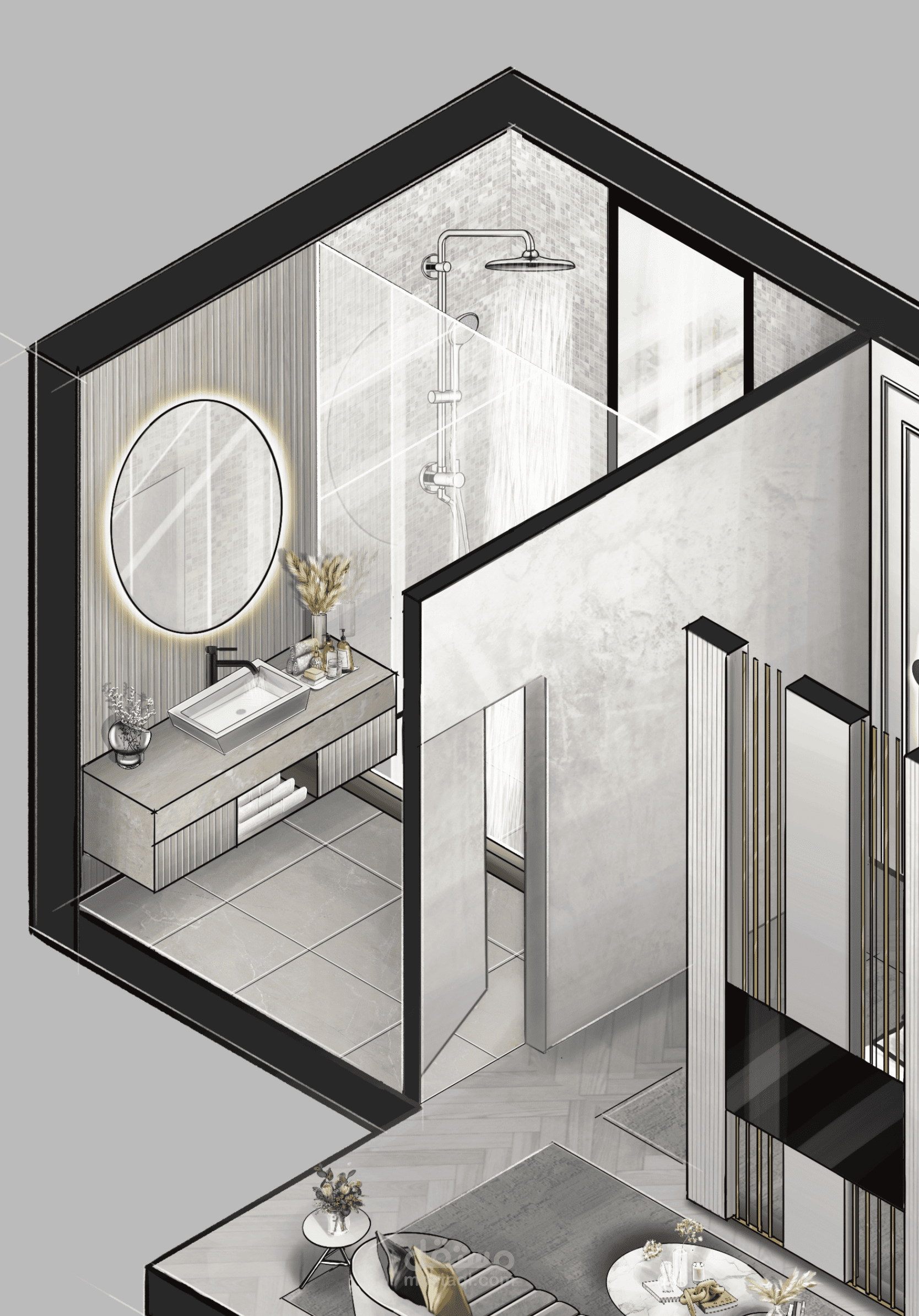axonometry sketch /3D plan