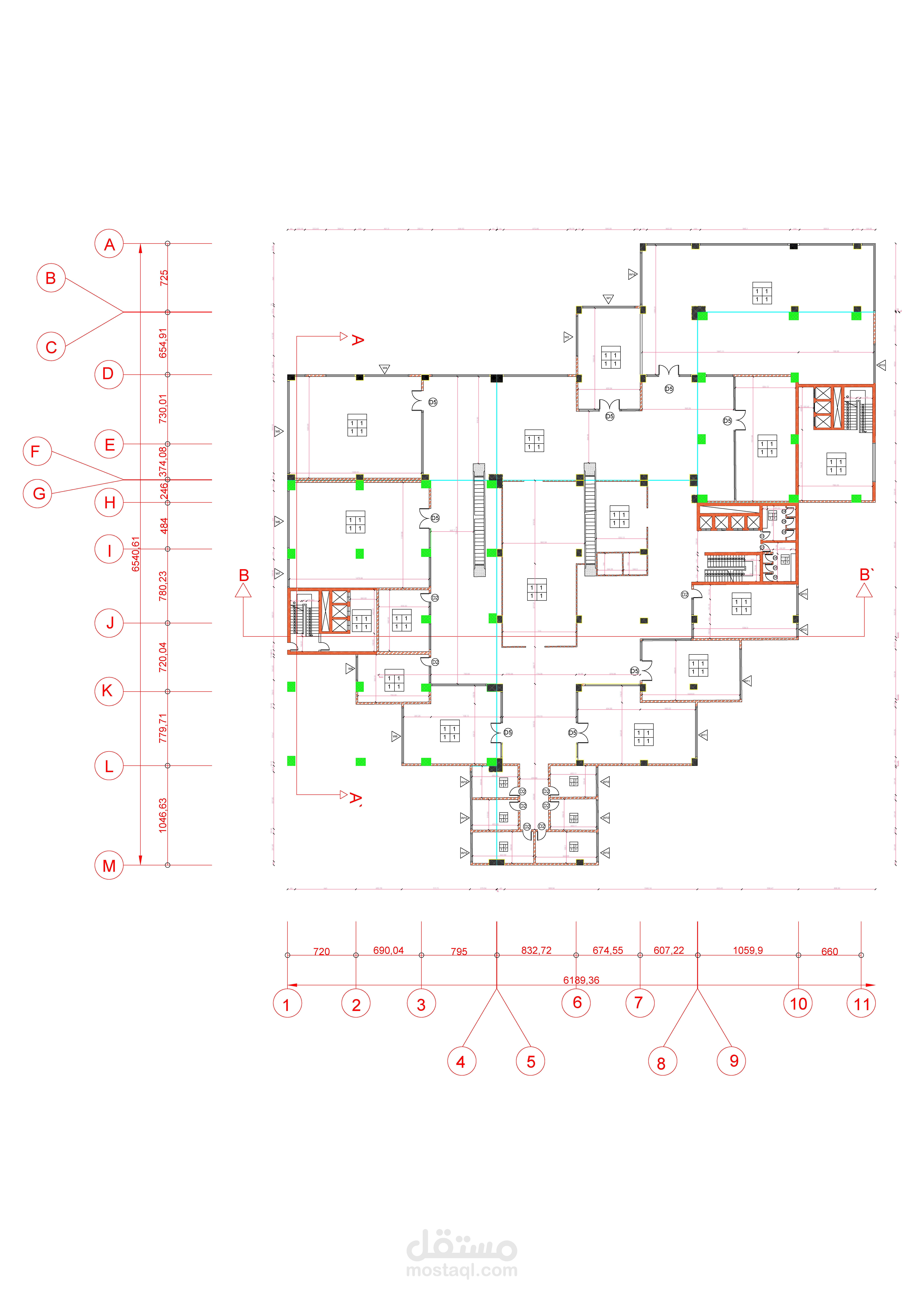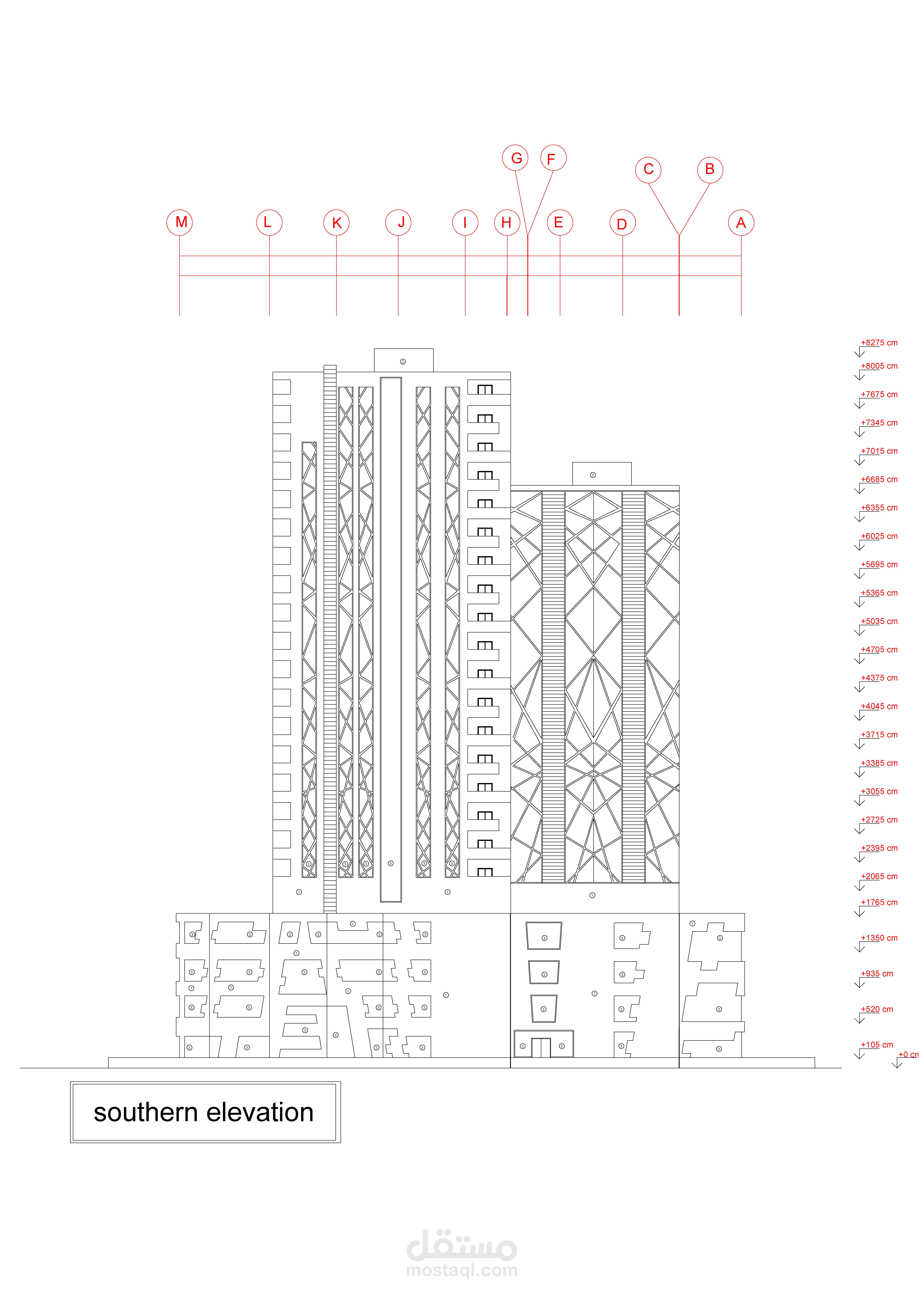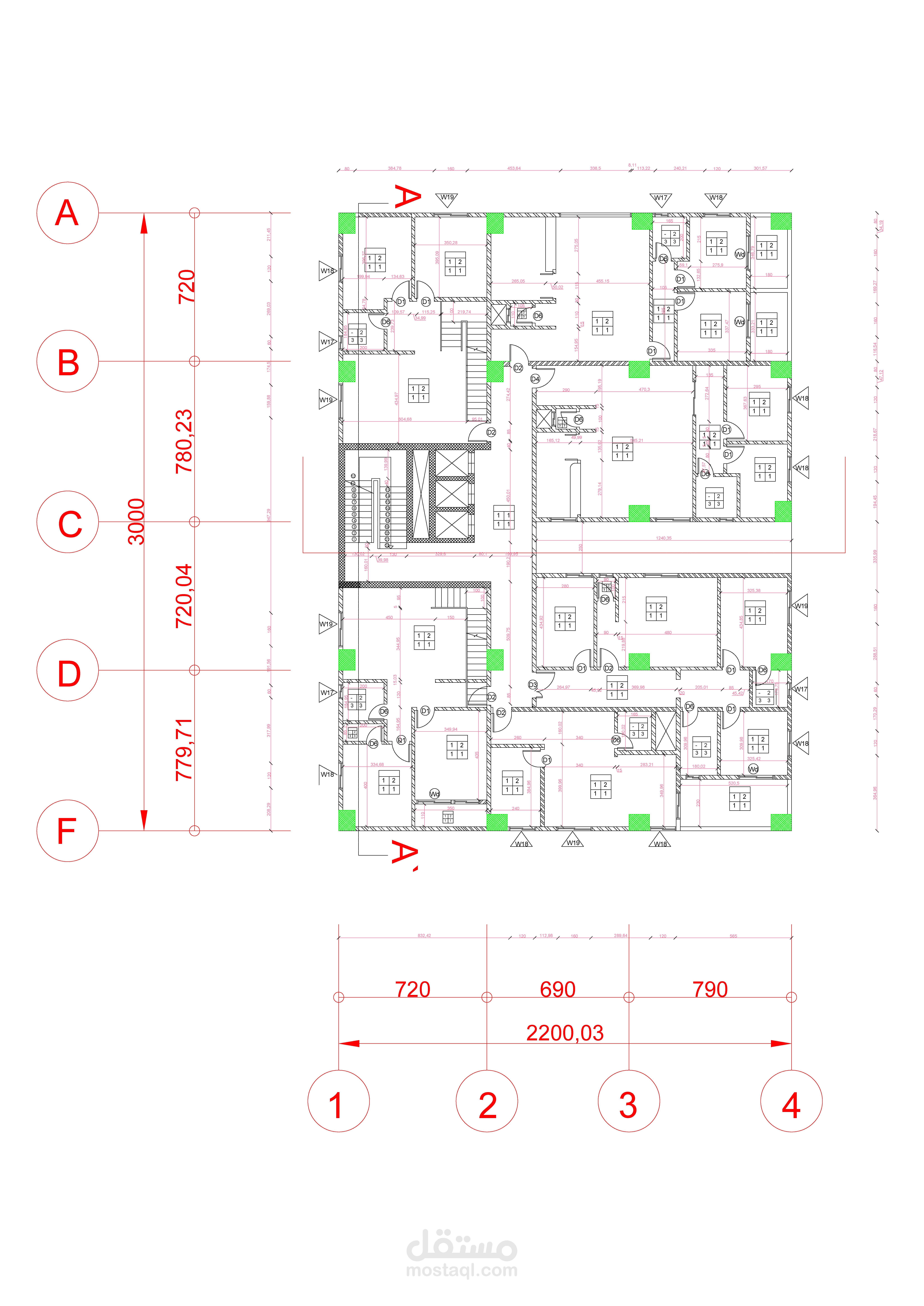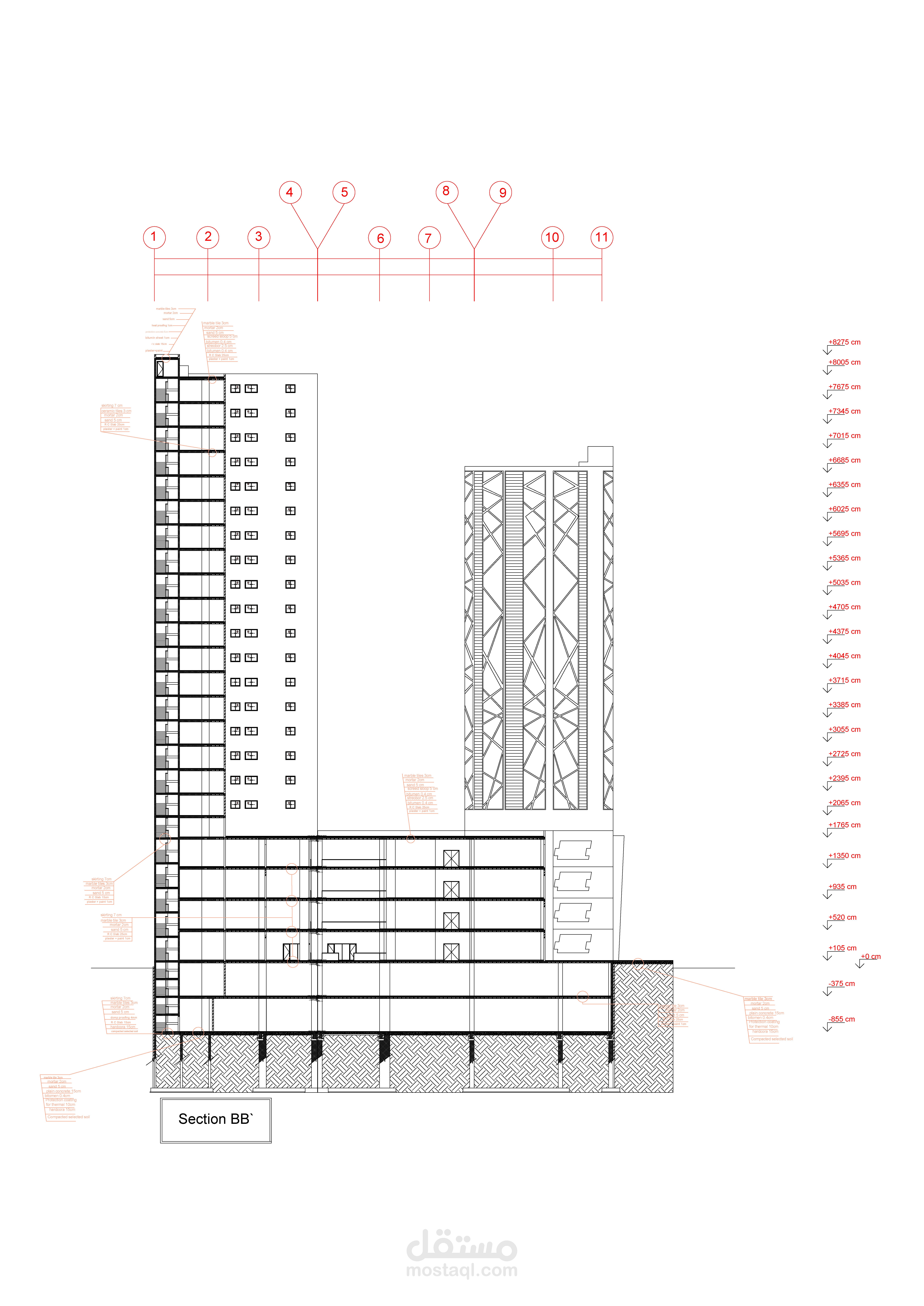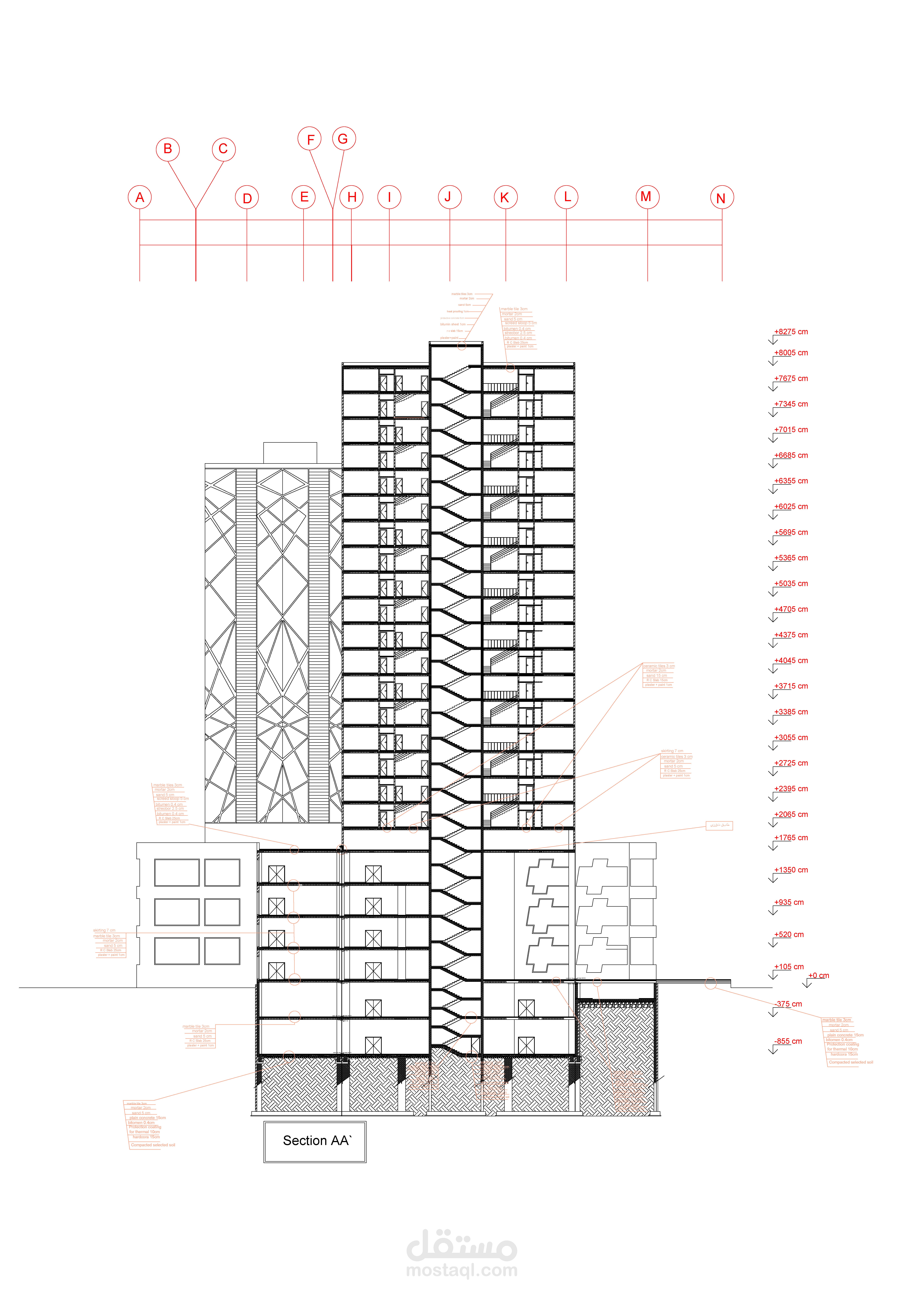 مخططات تنفيذية لمبنى متعدد الاستعمالات: