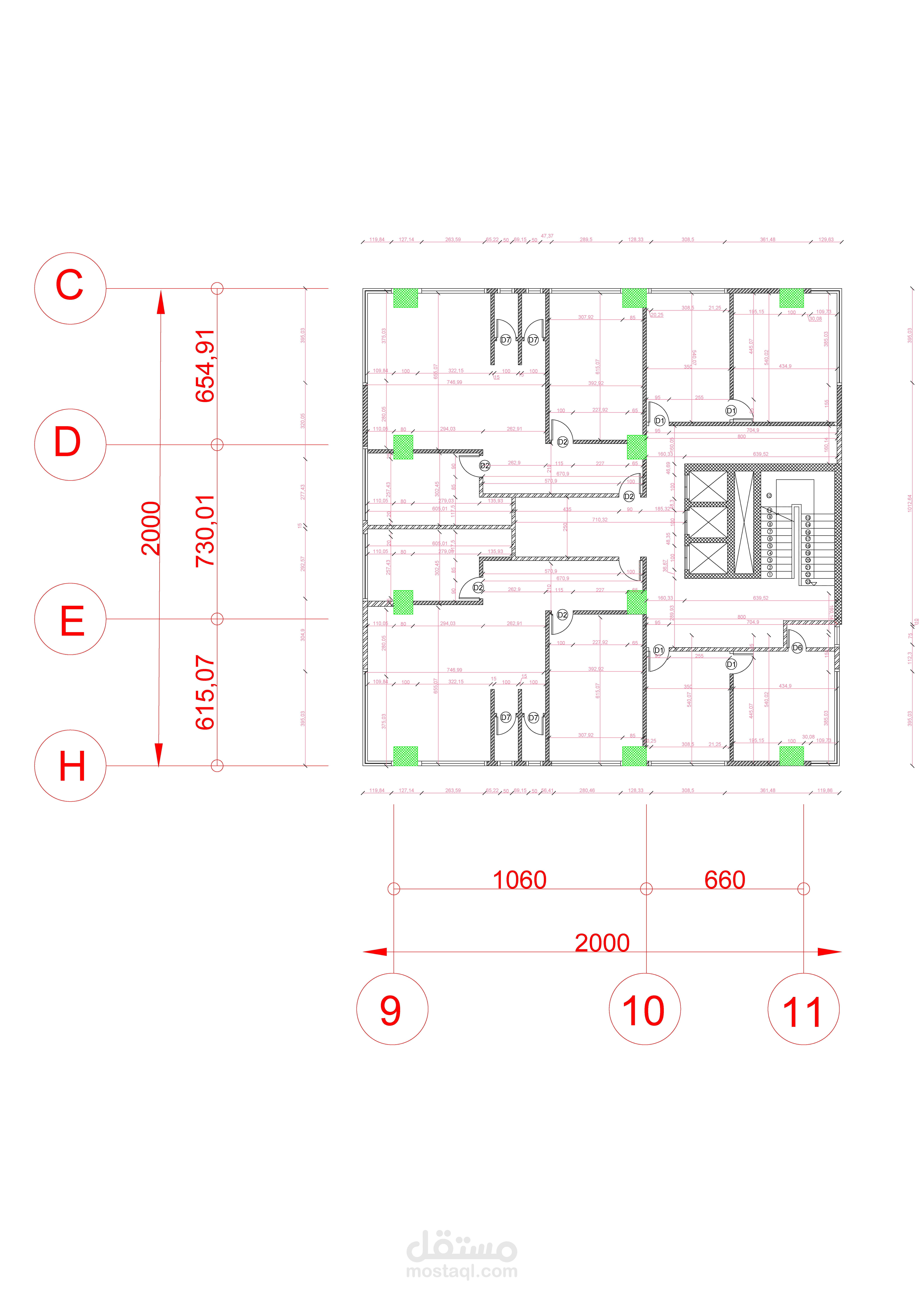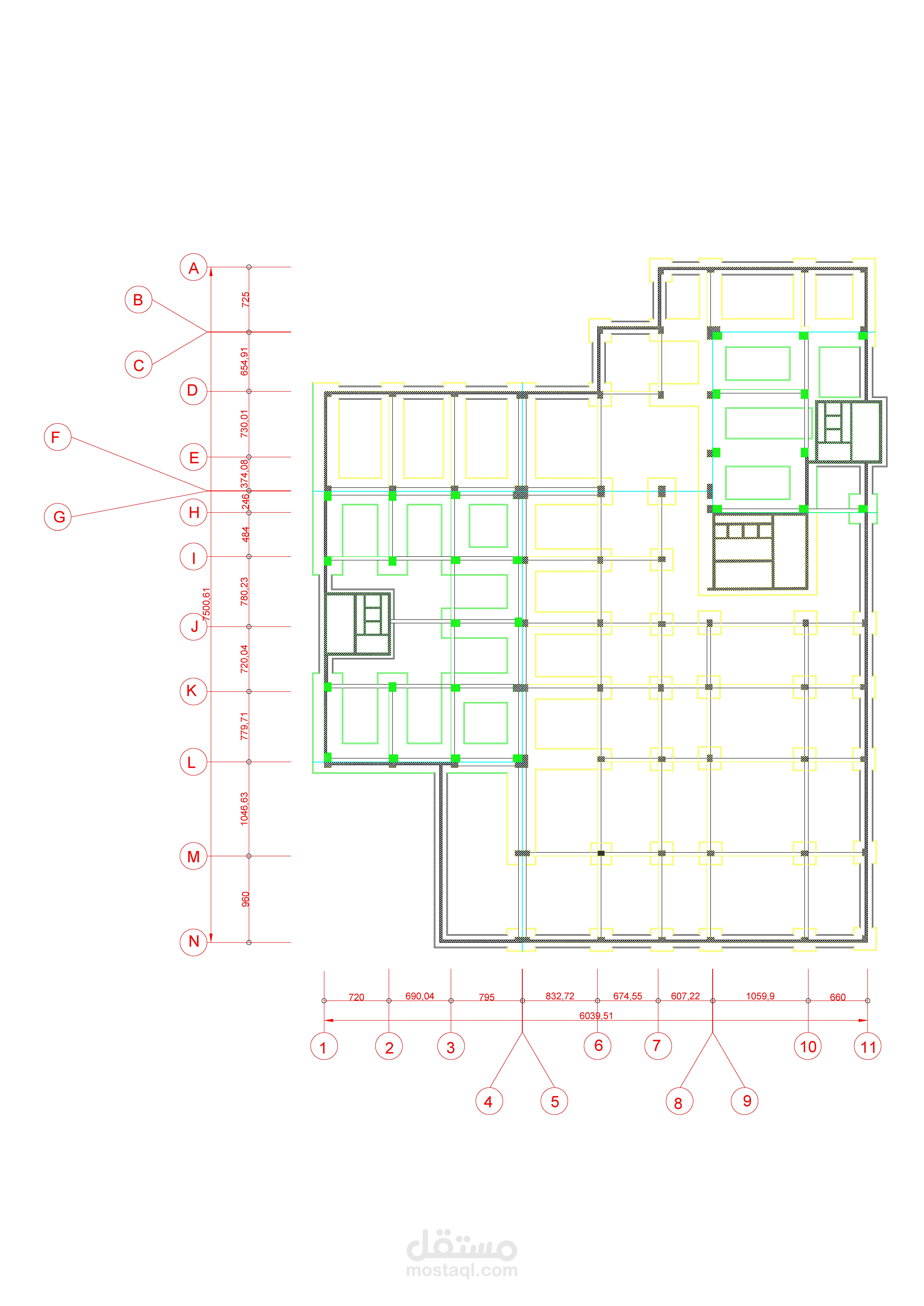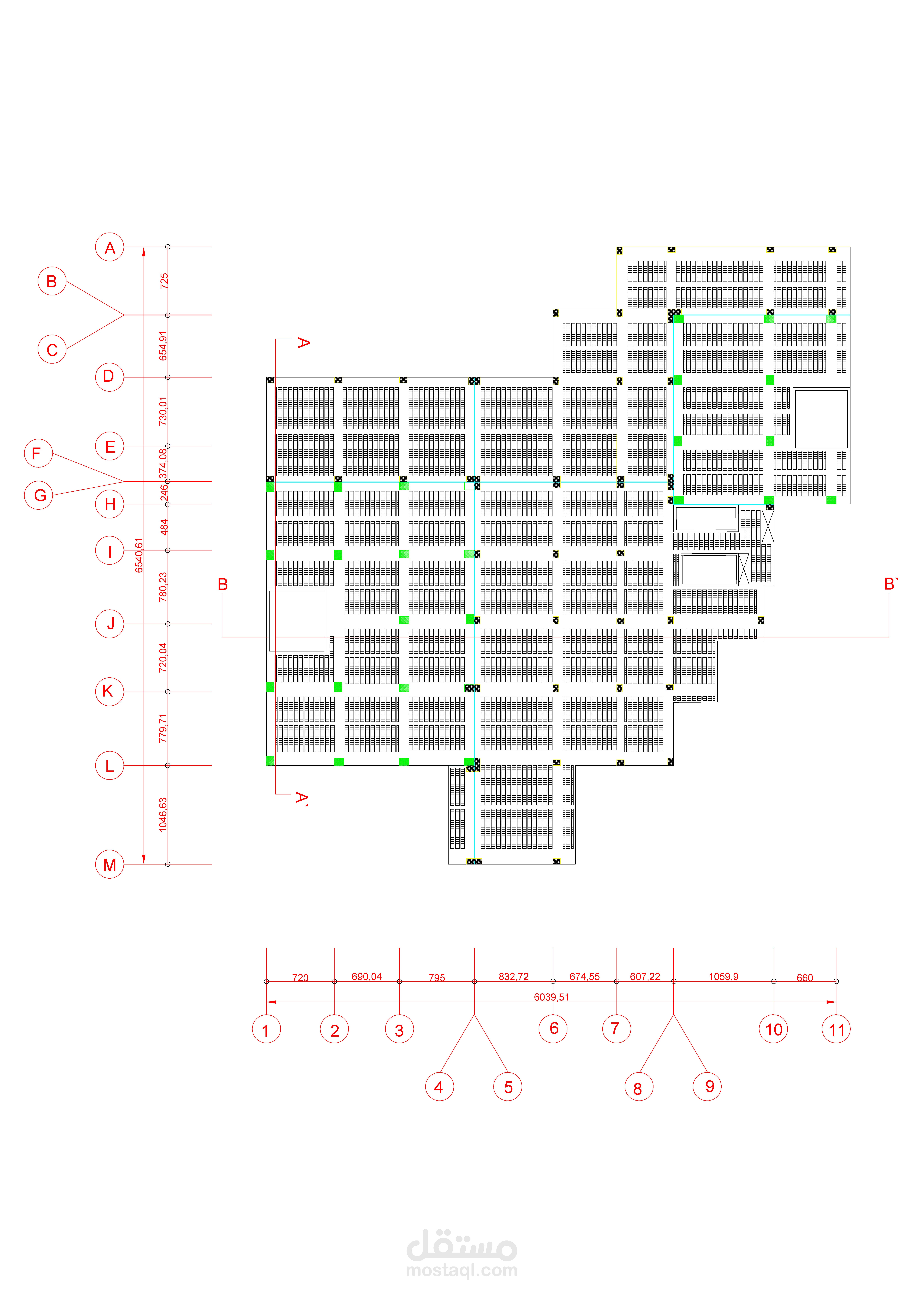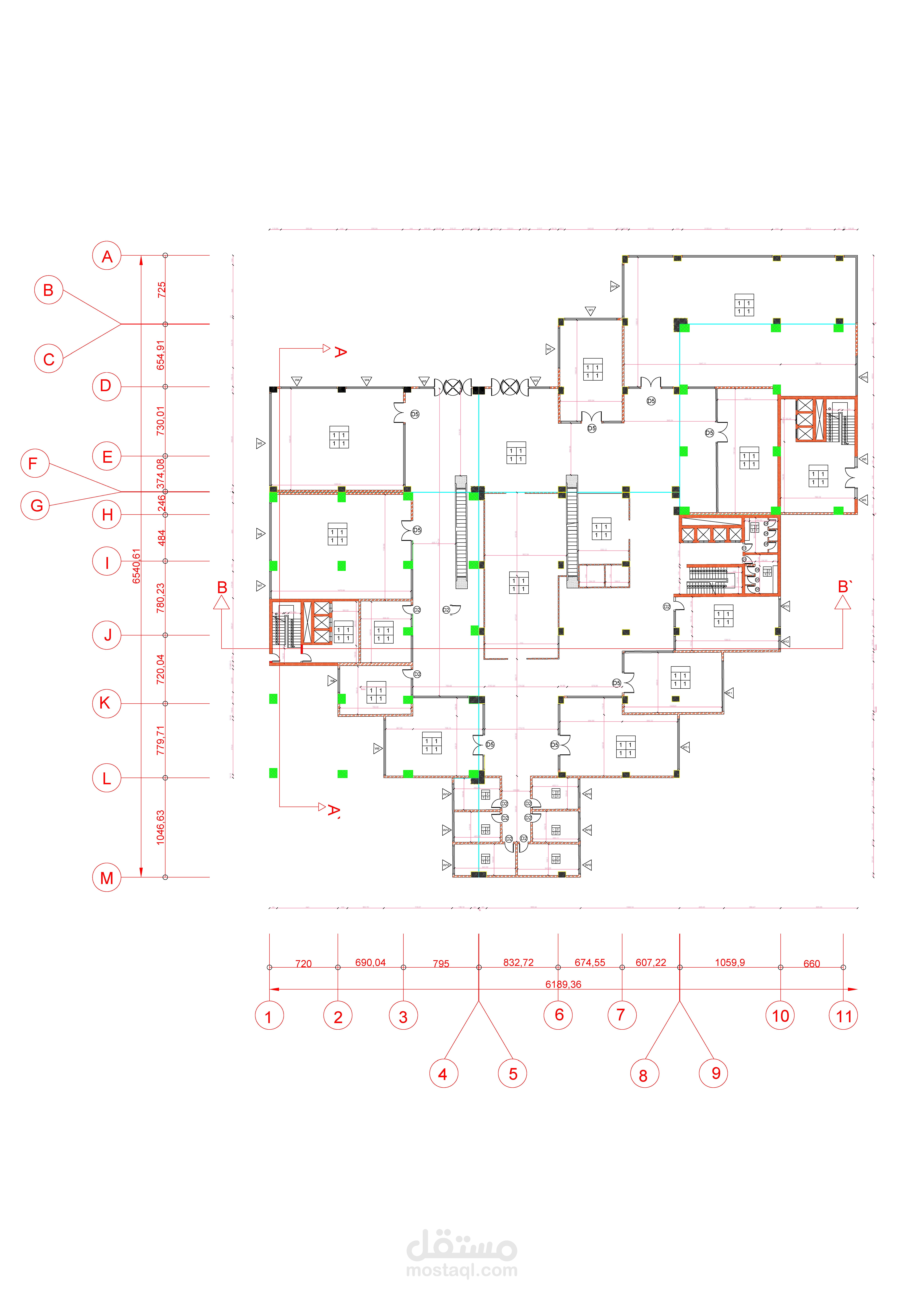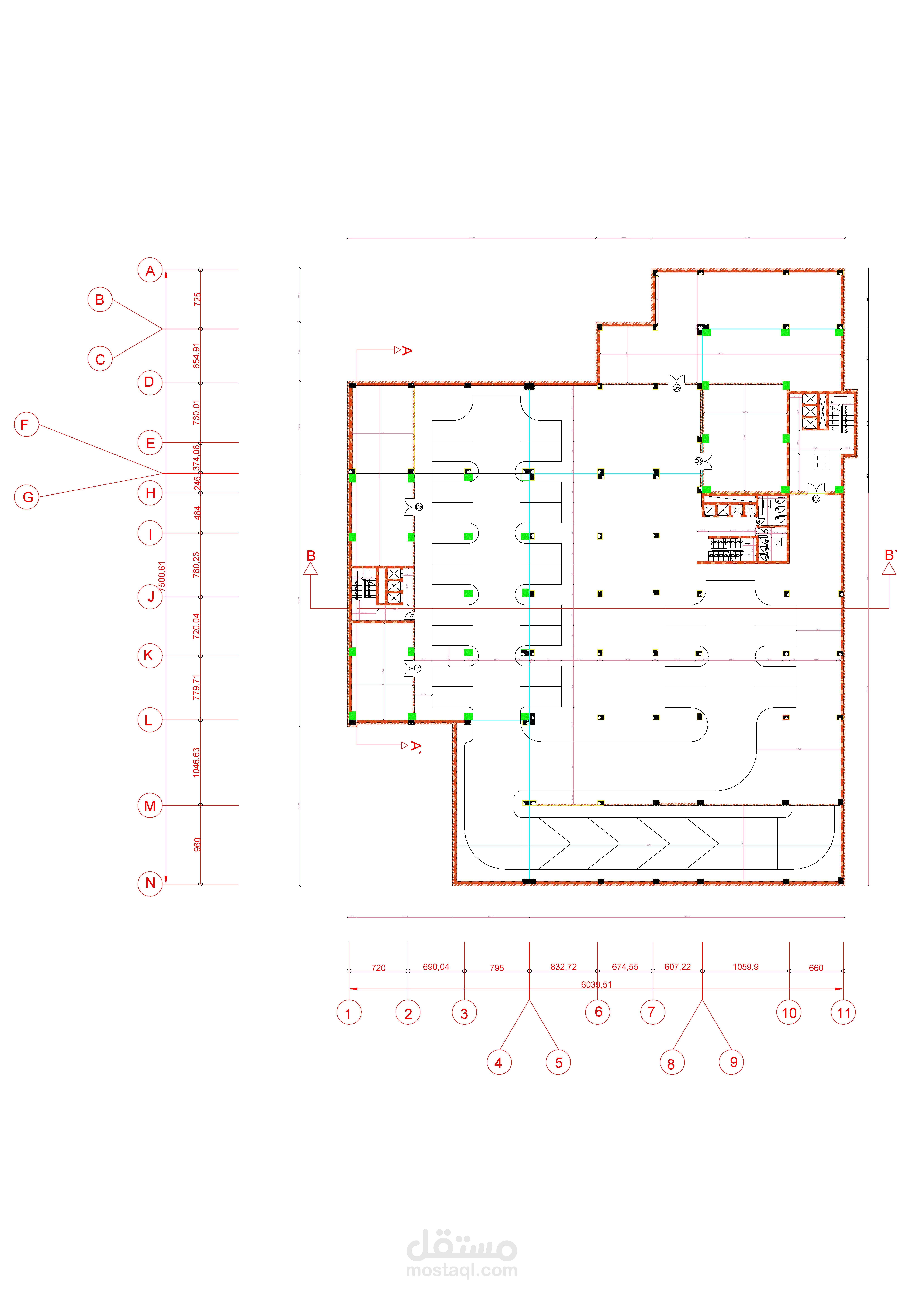 مخططات تنفيذية لمبنى متعدد الاستعمالات: