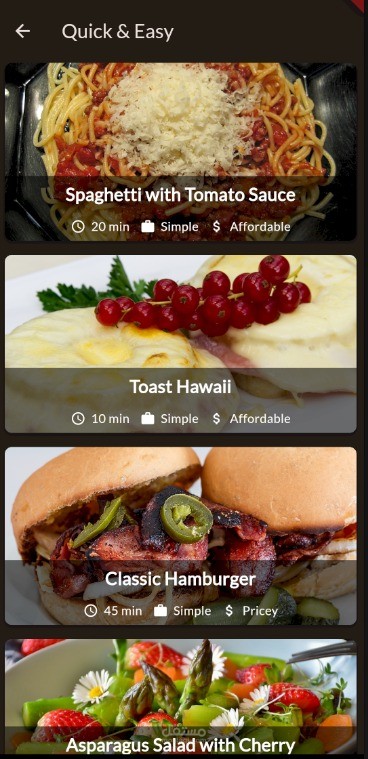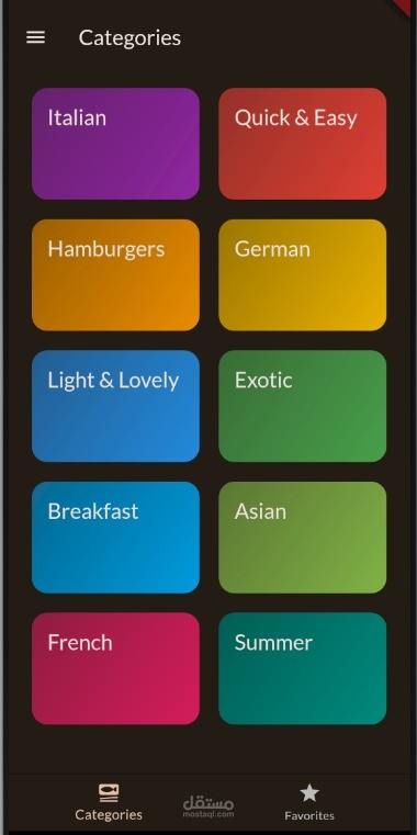 لقد قمت بتطوير تطبيق لتنظيم وجبات الطعام، حيث يتضمن تصنيفات متنوعة، وفي كل تصنيف تجد مجموعة من الوجبات. يتيح التطبيق للمستخدمين الاطلاع على تفاصيل كل وجبة، بما في ذلك قائمة المكونات. تم تصميم التطبيق لتحقيق تجربة سهلة ومريحة لاستكشاف وتحضير وصفات متنوعة. دعونا نتحدث حول كيف يمكنني تكامل هذا التصميم في مشروعك بشكل فعّال