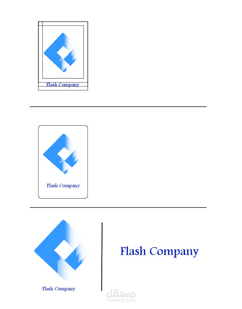 تصميم الهوية البصرية الكاملة لشركة فلاش، بما تحتوية من ورق مراسلات، وبزنس كارد، الوان الشعار، درجات لون الشعار، فلسفة الشعار، ومج و.........