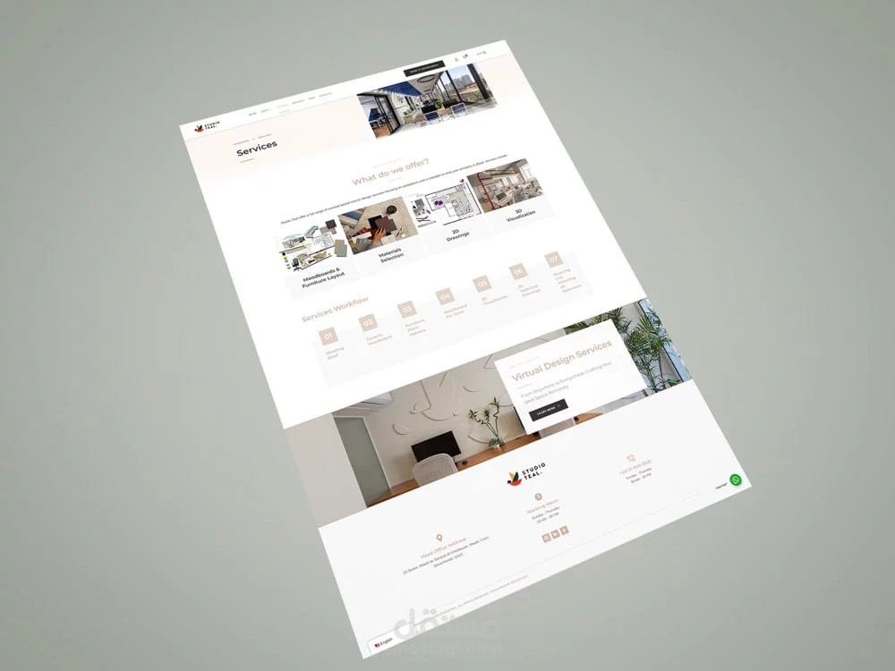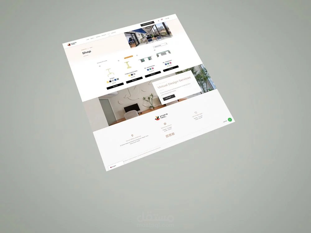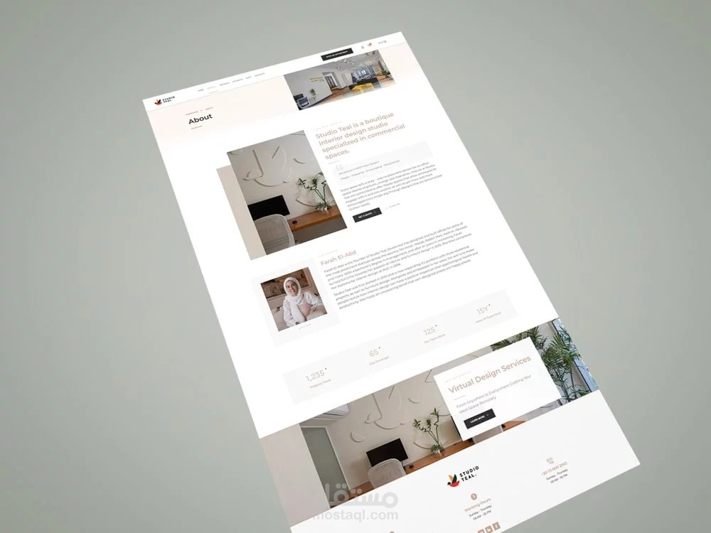 موقع تعريفي لشركة Studio Teal للانشاءات والديكورات الداخلية مدمج مع متجر ونظام حجز باقات ومواعيد