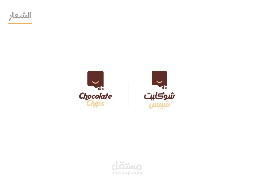 تصميم شعار ( شوكليت شيبس ) لمحل حلويات وشوكولاتة ,وفكرة الشعار هي دمج قالب الشوكولاتة مع الإبتسامة حيث أن الشوكولاتة من مسببات السعادة.