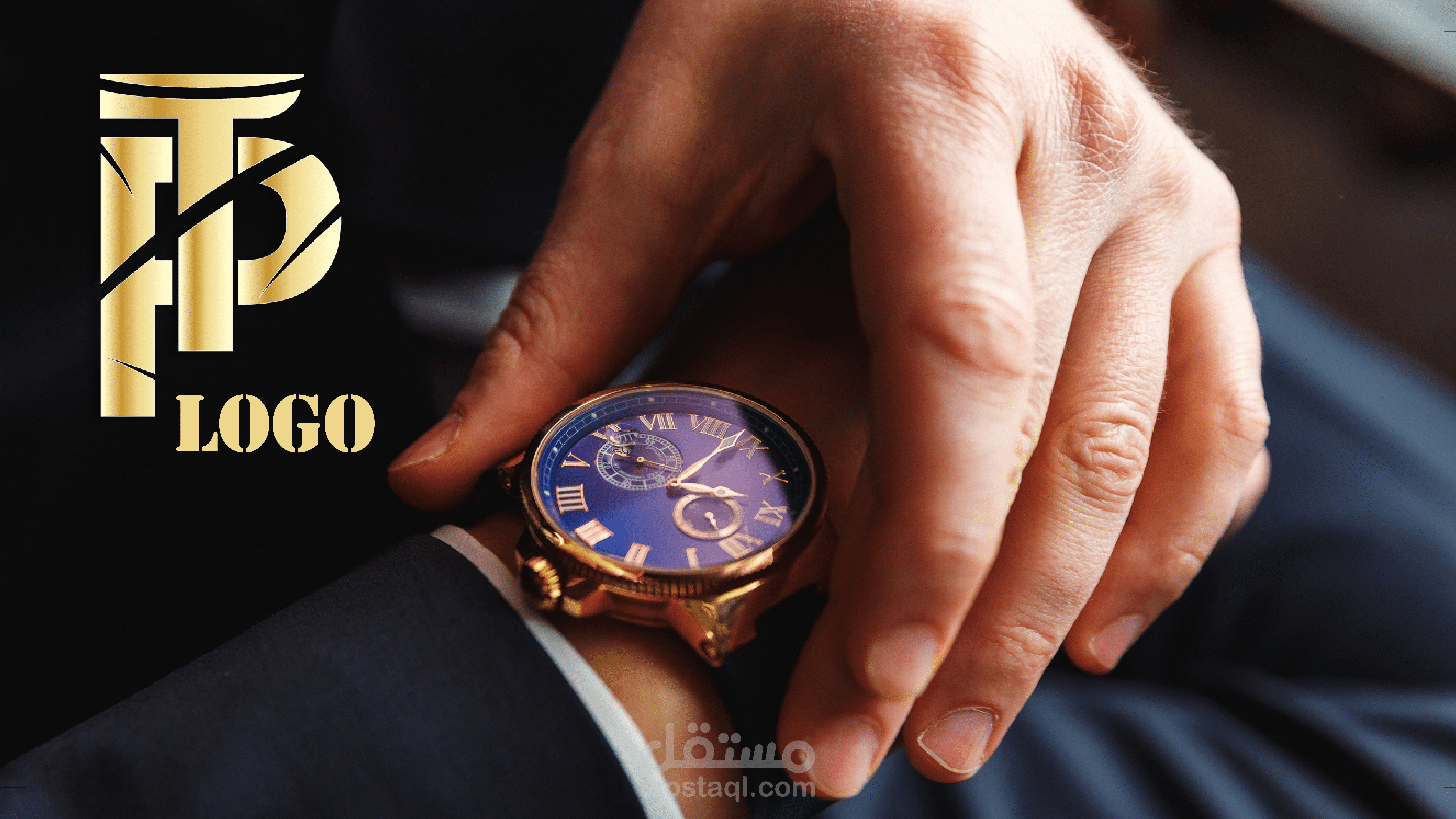 تصميم شعار لمتجر ساعات من الفئة الفارهة حيث يبرز هذا اللون الذهبي مع اللون الكحلي