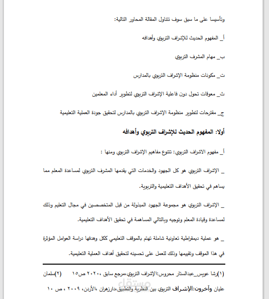 هذا العمل عبارة عن مقالة بحثية تحت عنوان اليات مقترحة لتطوير الاشراف التربوي في المدارس كتبت باستخدام برنامج الوورد.