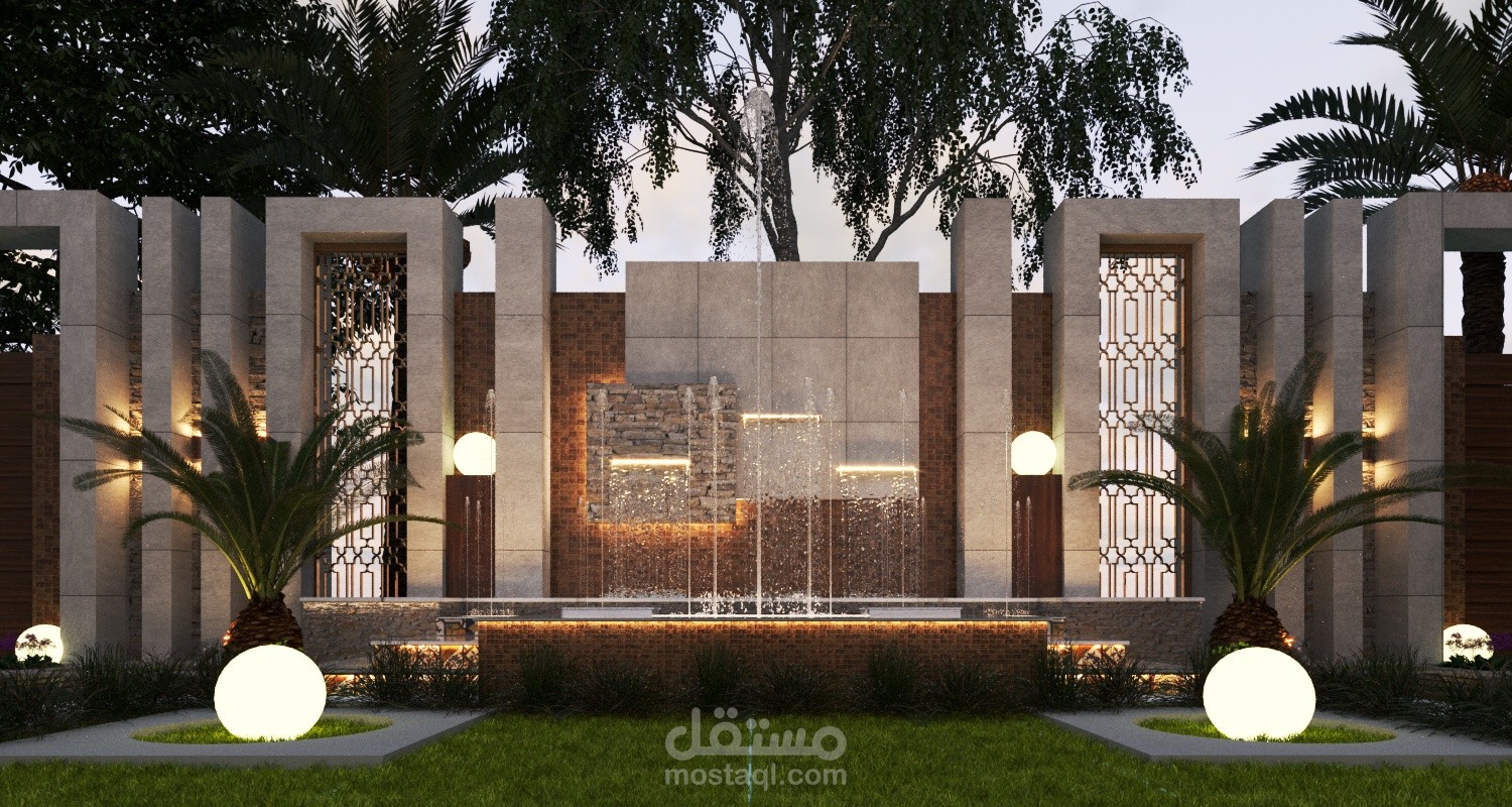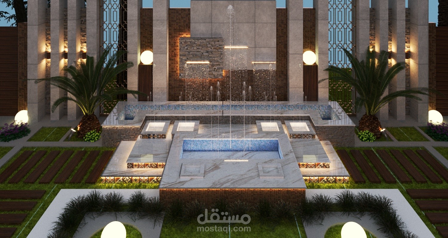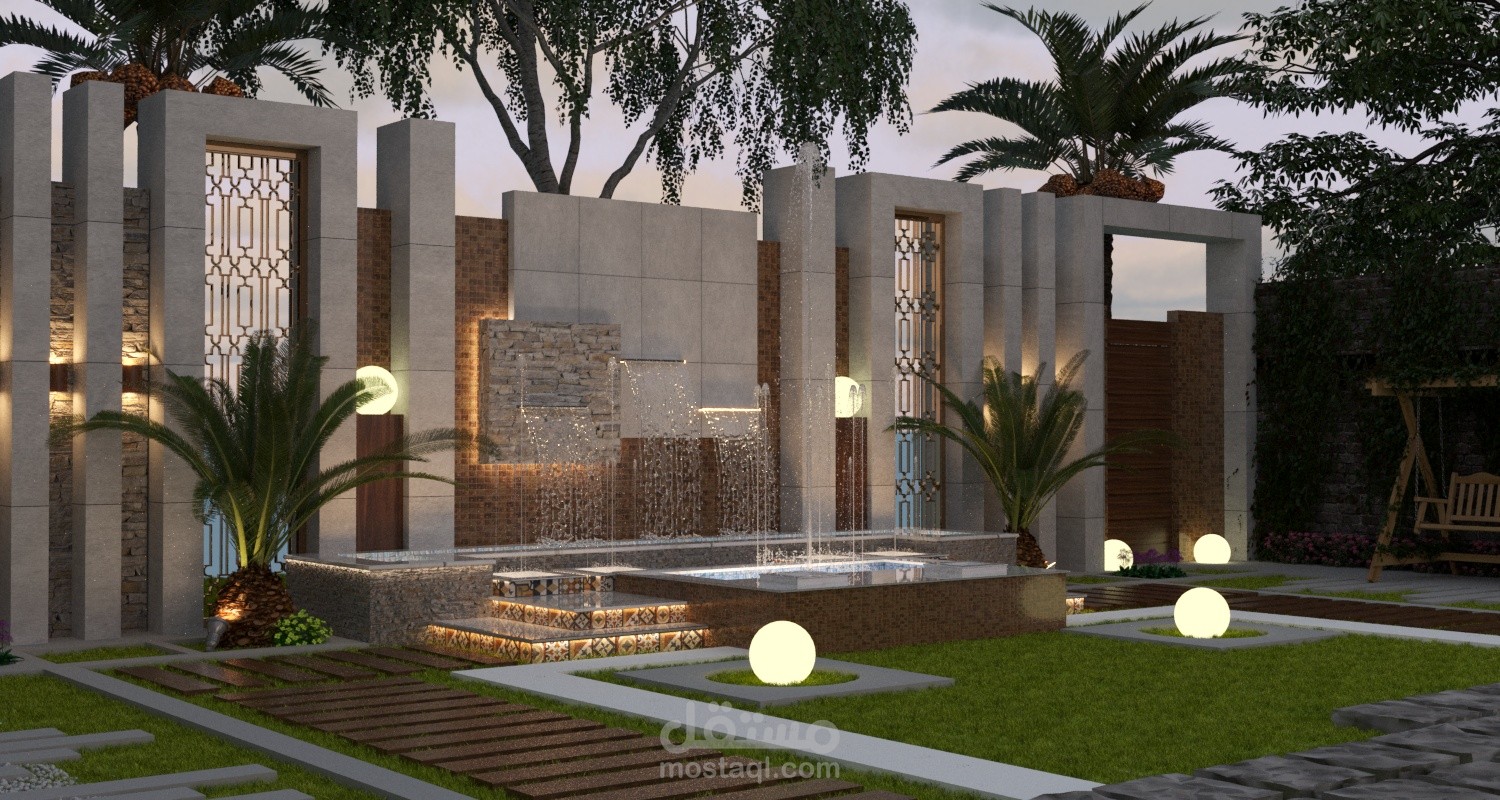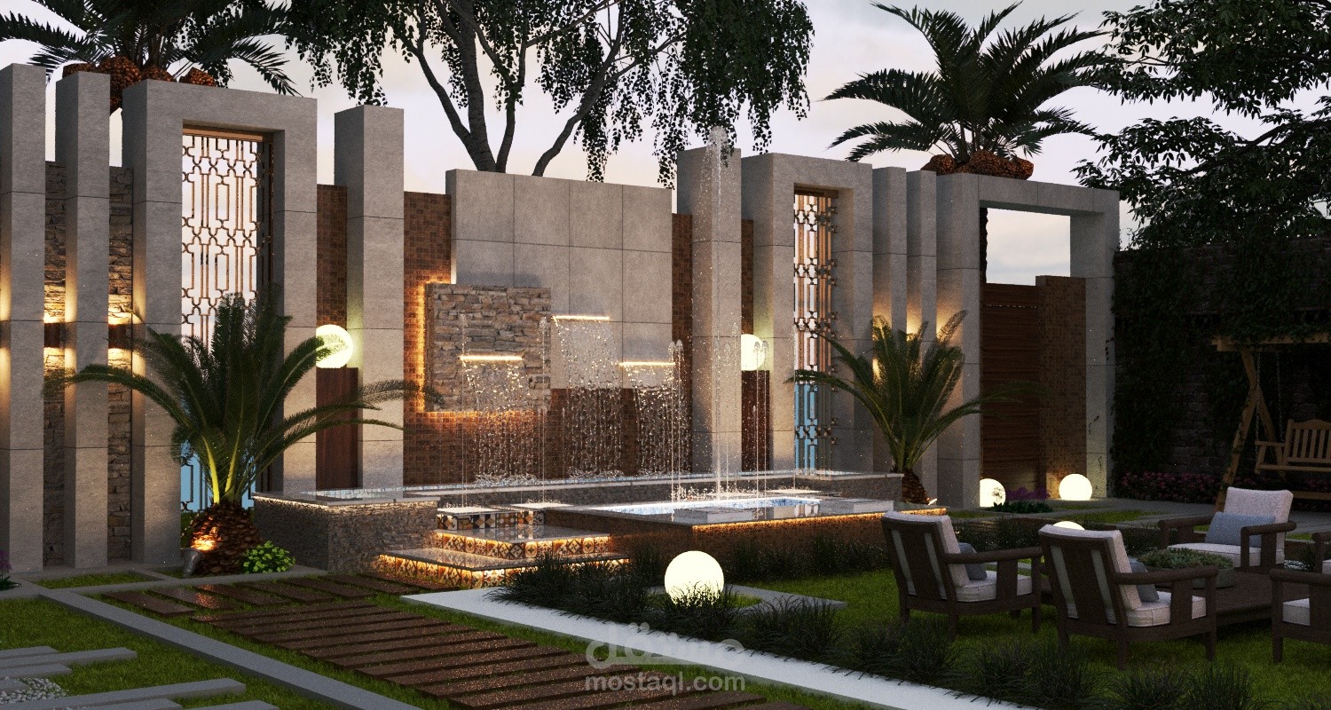 بناء على طلب العميل تم تصميم حديقة داخلية للفيلا بأبعد 20*20 م