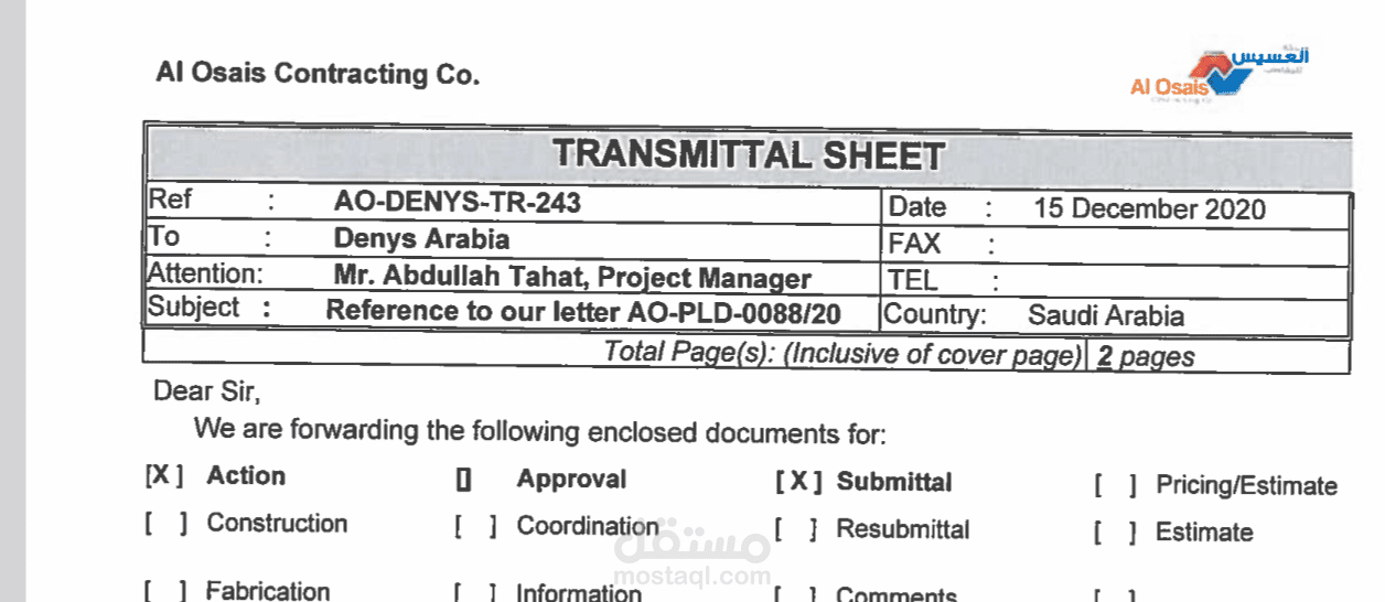 ترجمة ملف لورقة إحالة لشركة العسيس للمقاولات