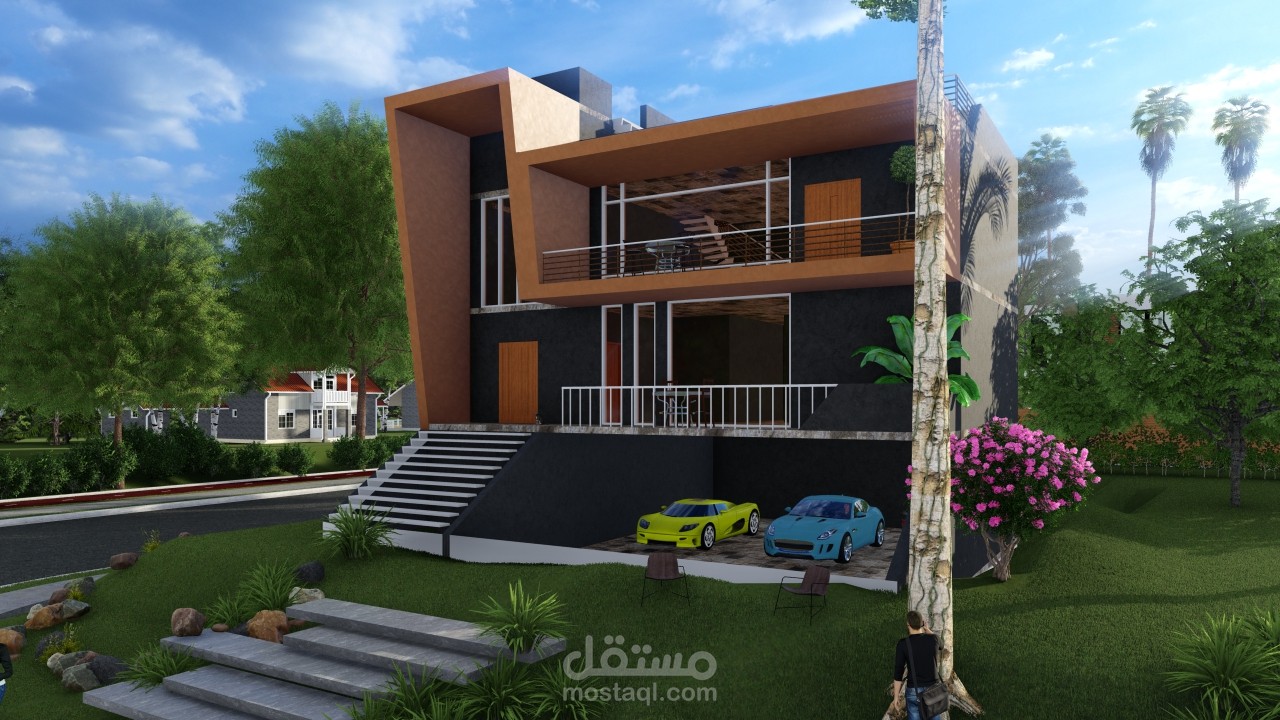 تصميم فيلا من طابقين و باركينج سيارات تحت الارض مساحة 700 متر مربع