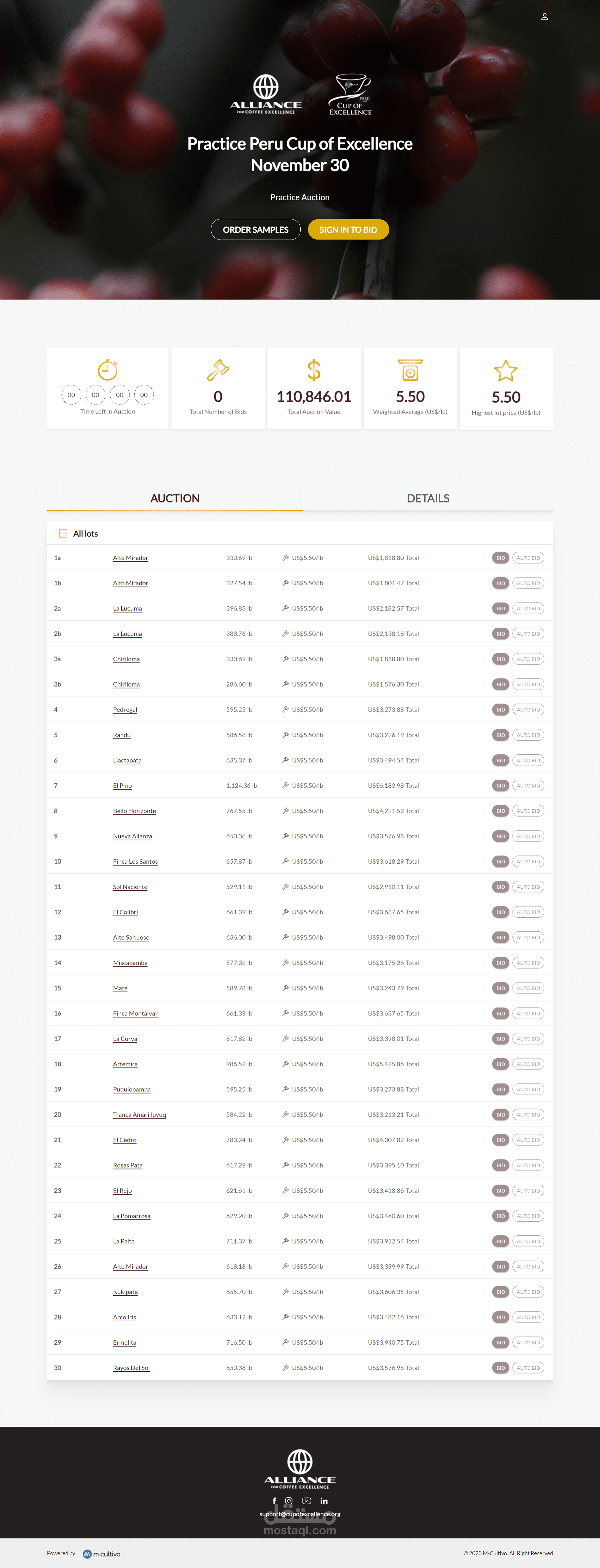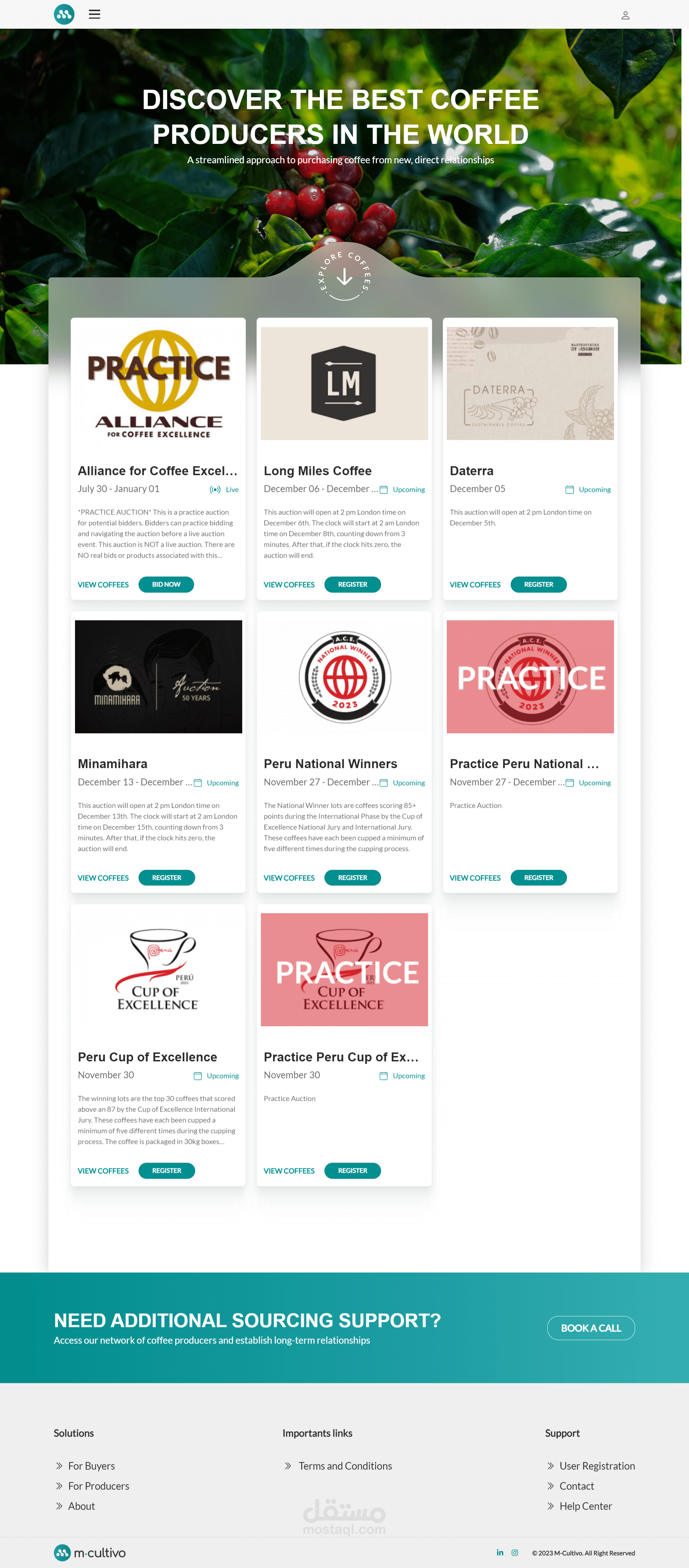 ولقد تم العمل أيضا لنفس الشركة موقع مختص في عملية المزايدات على محاصيل القهوة باستخدام
