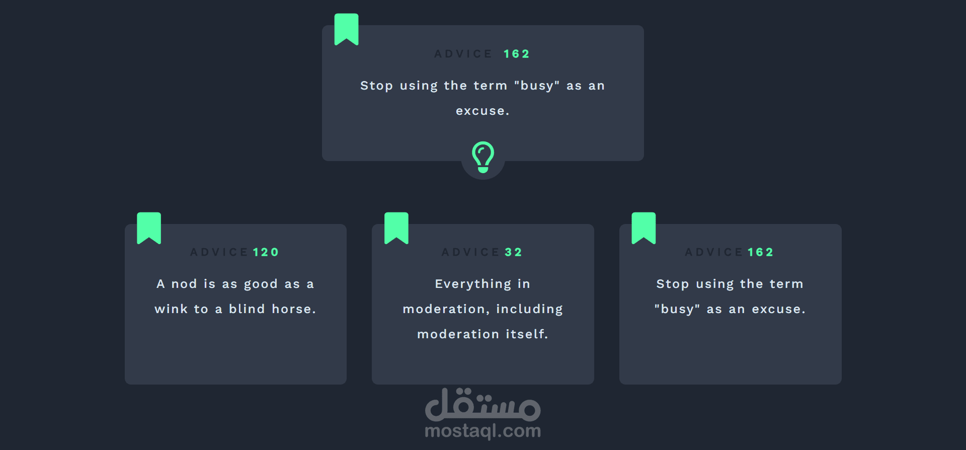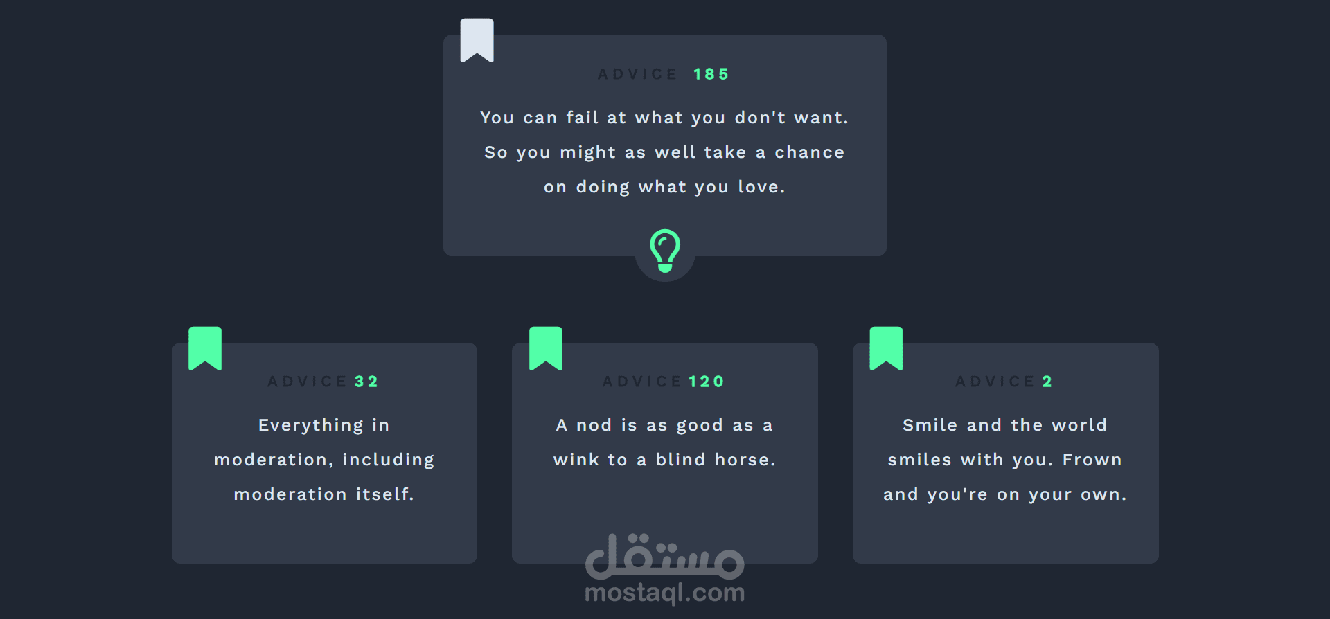 يقوم الموقع بعرض نصائح مختلفة ويمكن للمستخدم رؤية العديد منها وحفظ/مسح أي نصحية معروضة أمامة