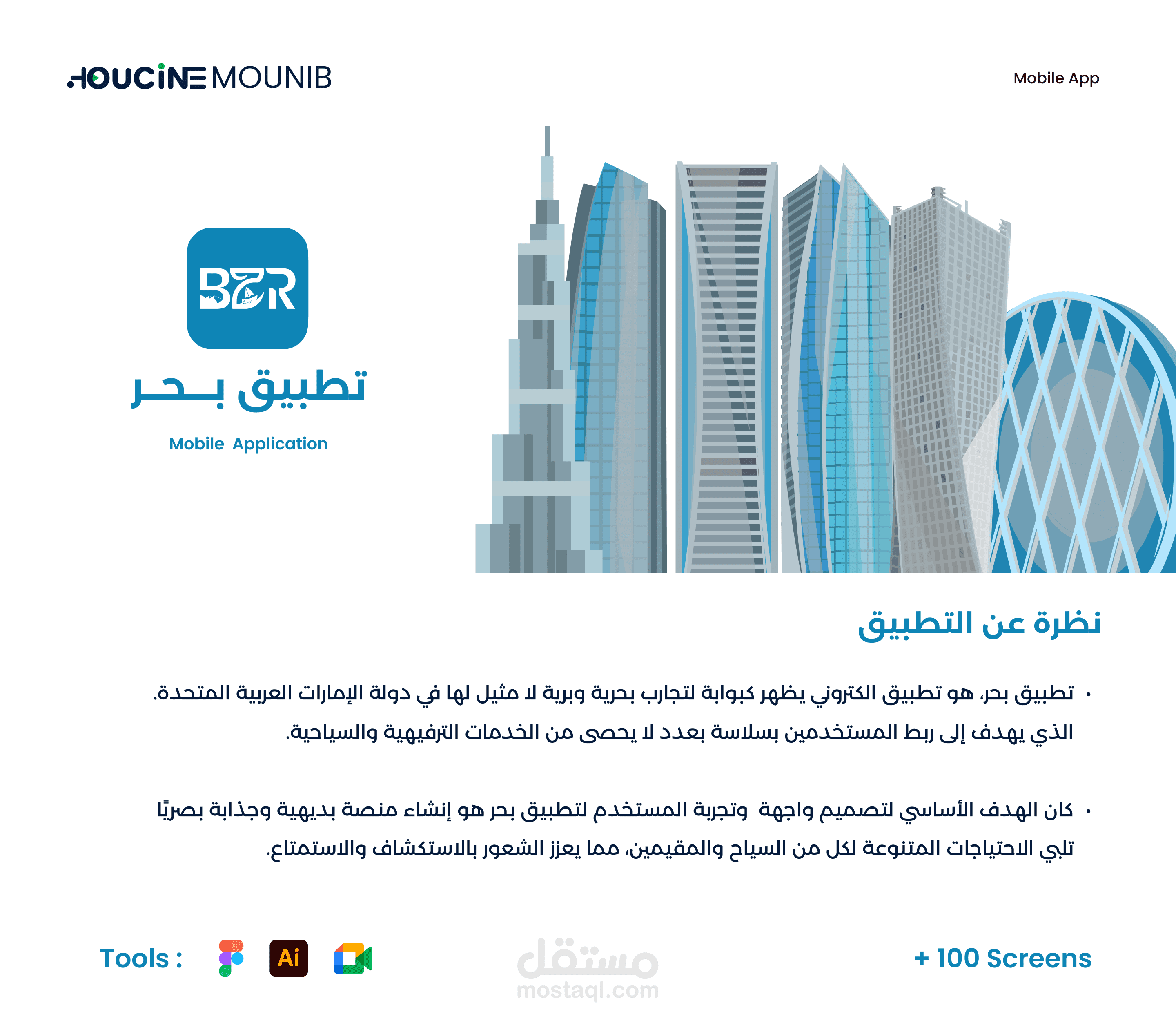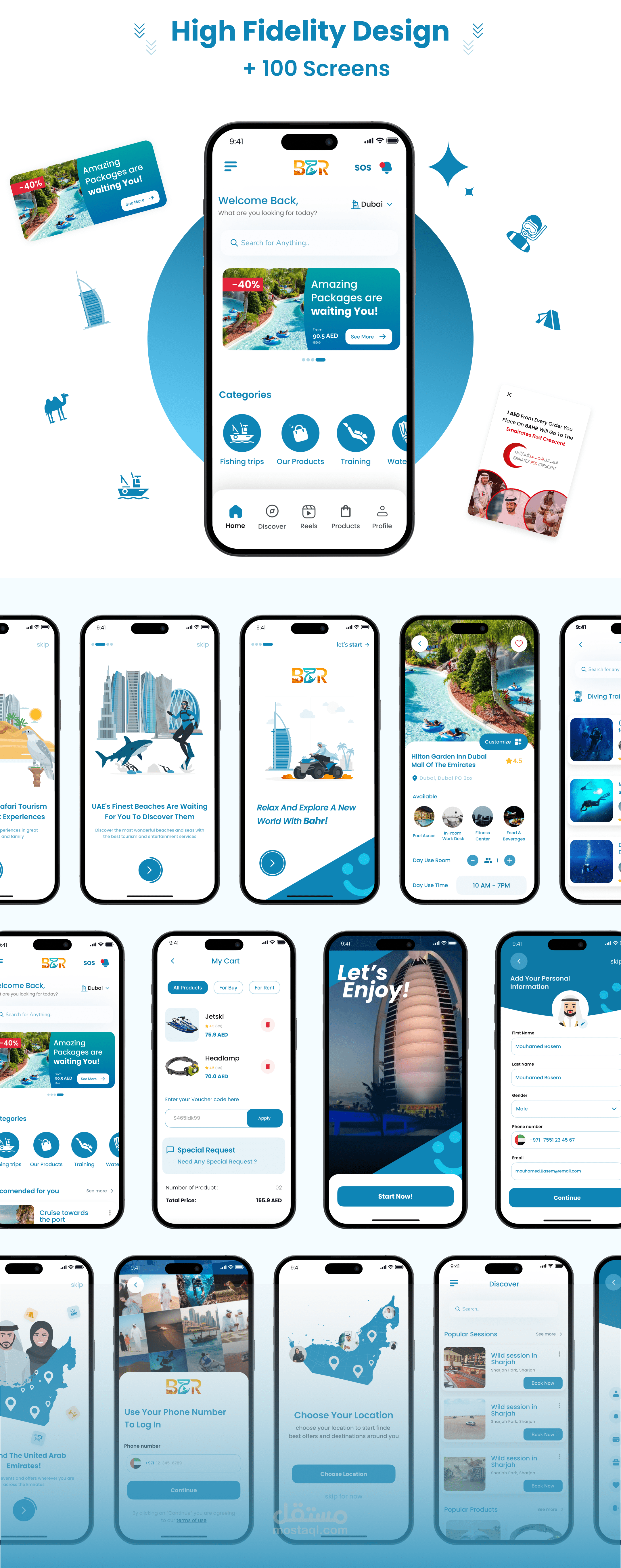 - كان الهدف الأساسي لتصميم تطبيق بحر هو إنشاء منصة بديهية وجذابة بصريًا تلبي الاحتياجات المتنوعة لكل من السياح والمقيمين، مما يعزز الشعور بالاستكشاف والاستمتاع.
