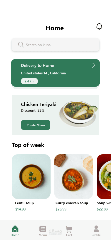 Kupa - Food Delivery App UI Kit