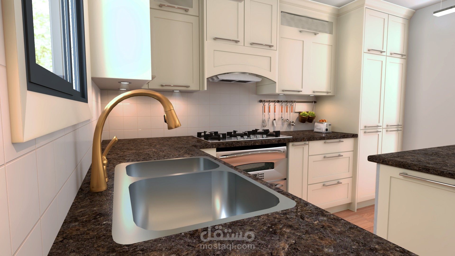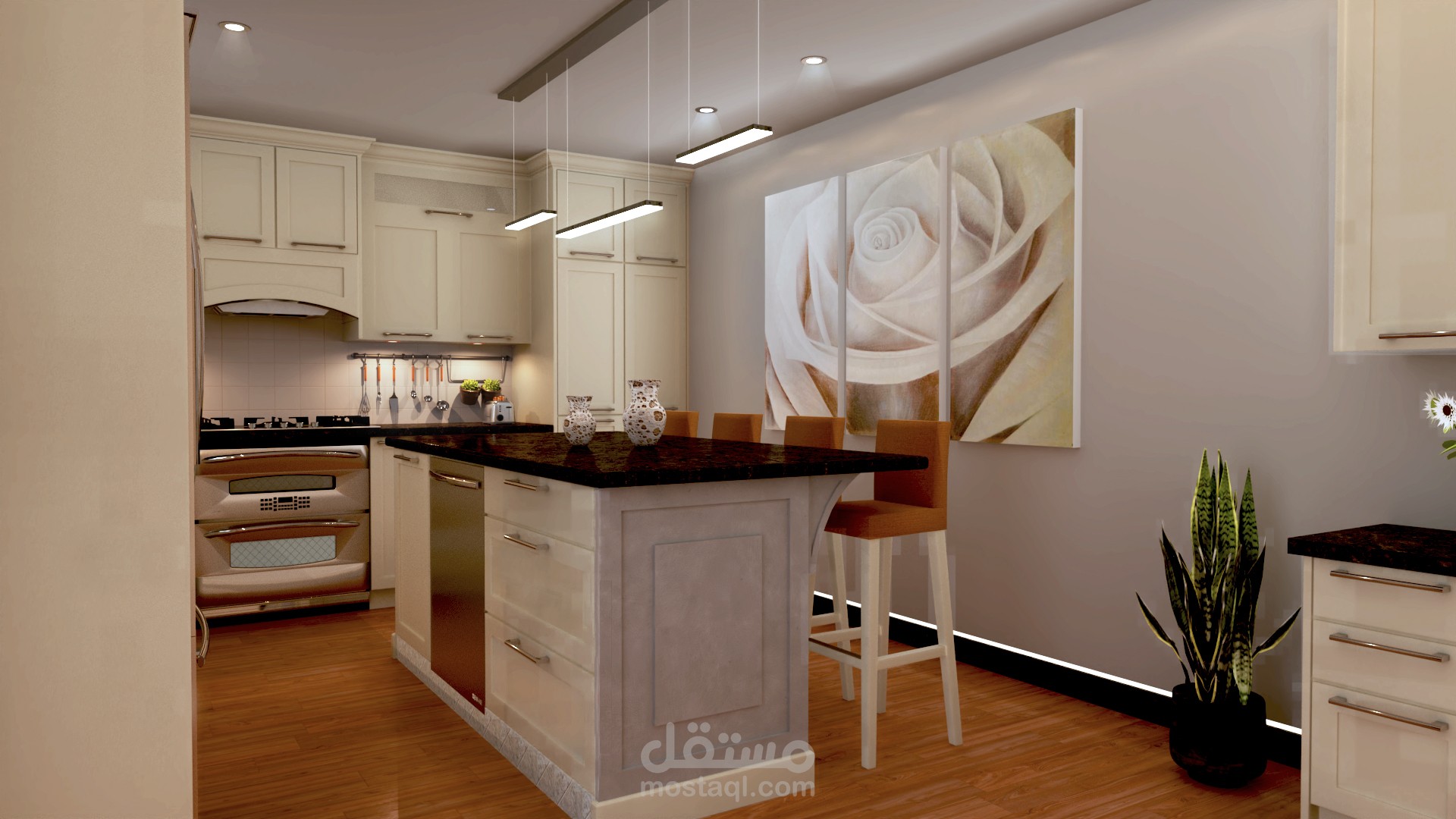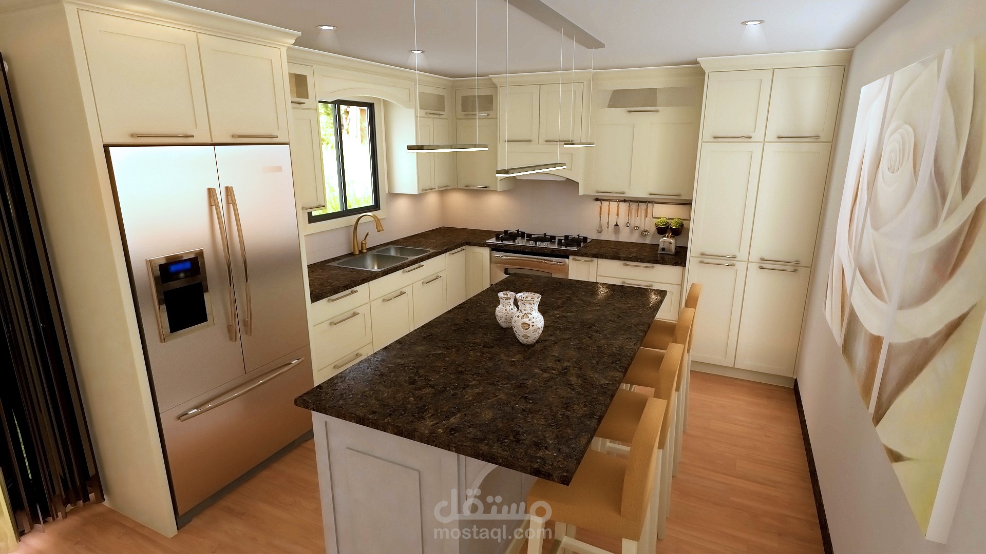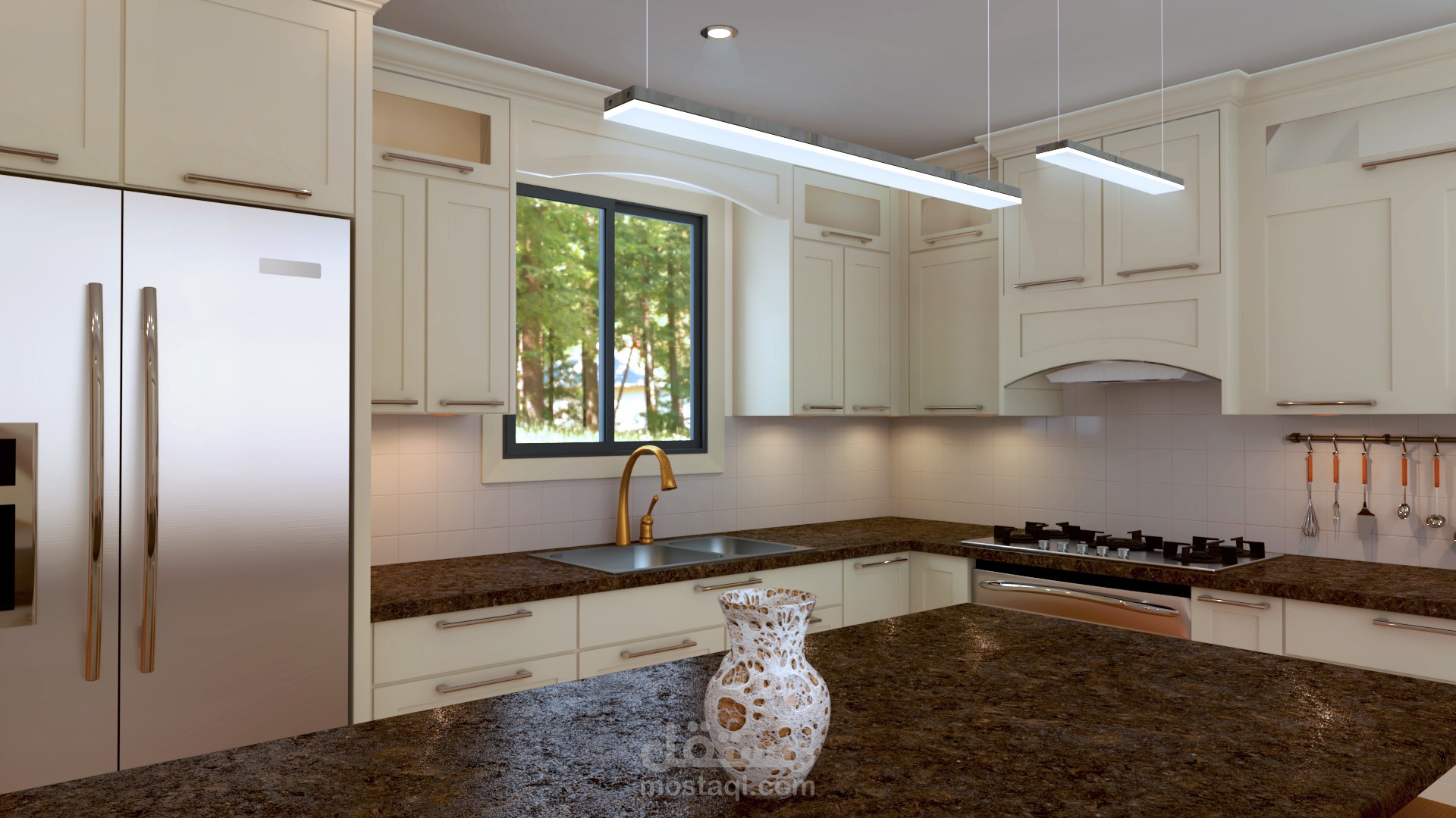 تصميم حديث وعصري لمطبخ يحتوي على أثاث مصنوع من خامات عصرية وحديثة