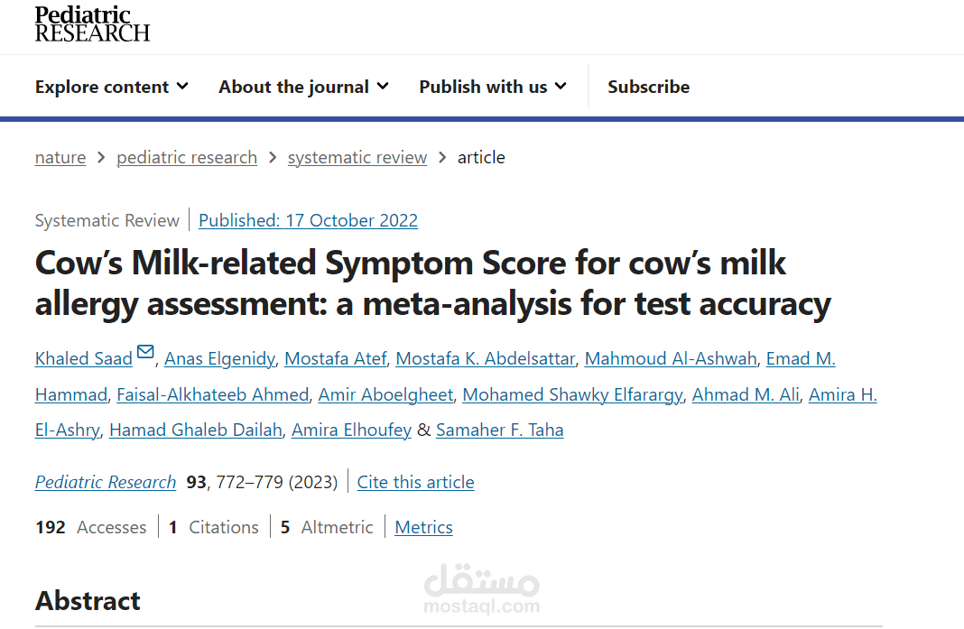 Cow’s Milk-related Symptom Score for cow’s milk allergy assessment: a meta-analysis for test accuracy