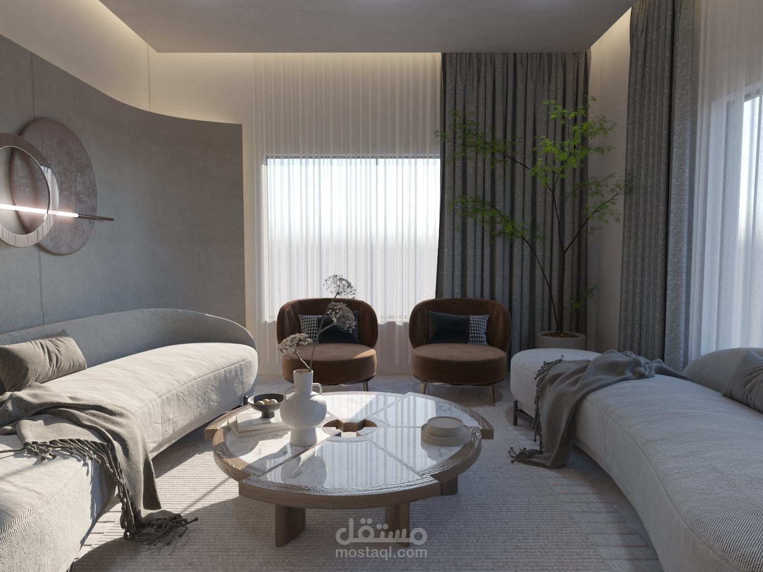 WABI SABI WITH MODERN LIVING ROOM DESIGN IN SAUDI ARABIA