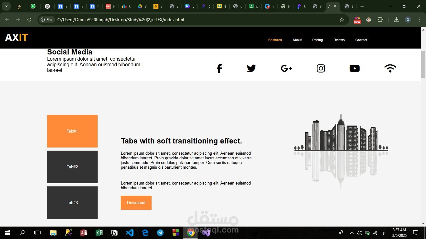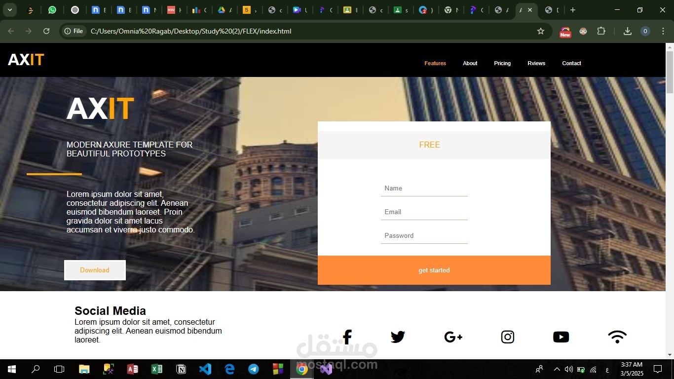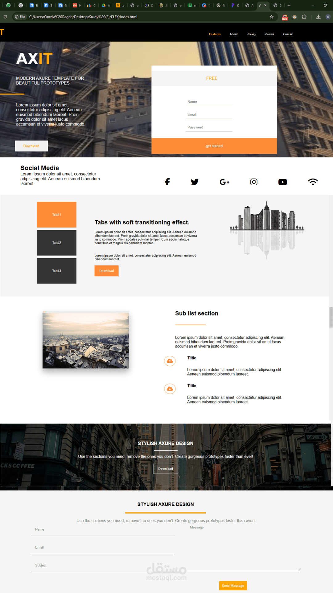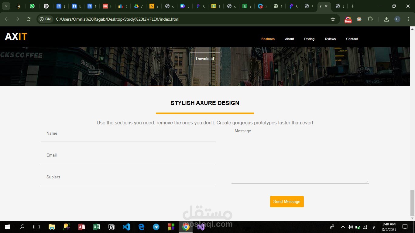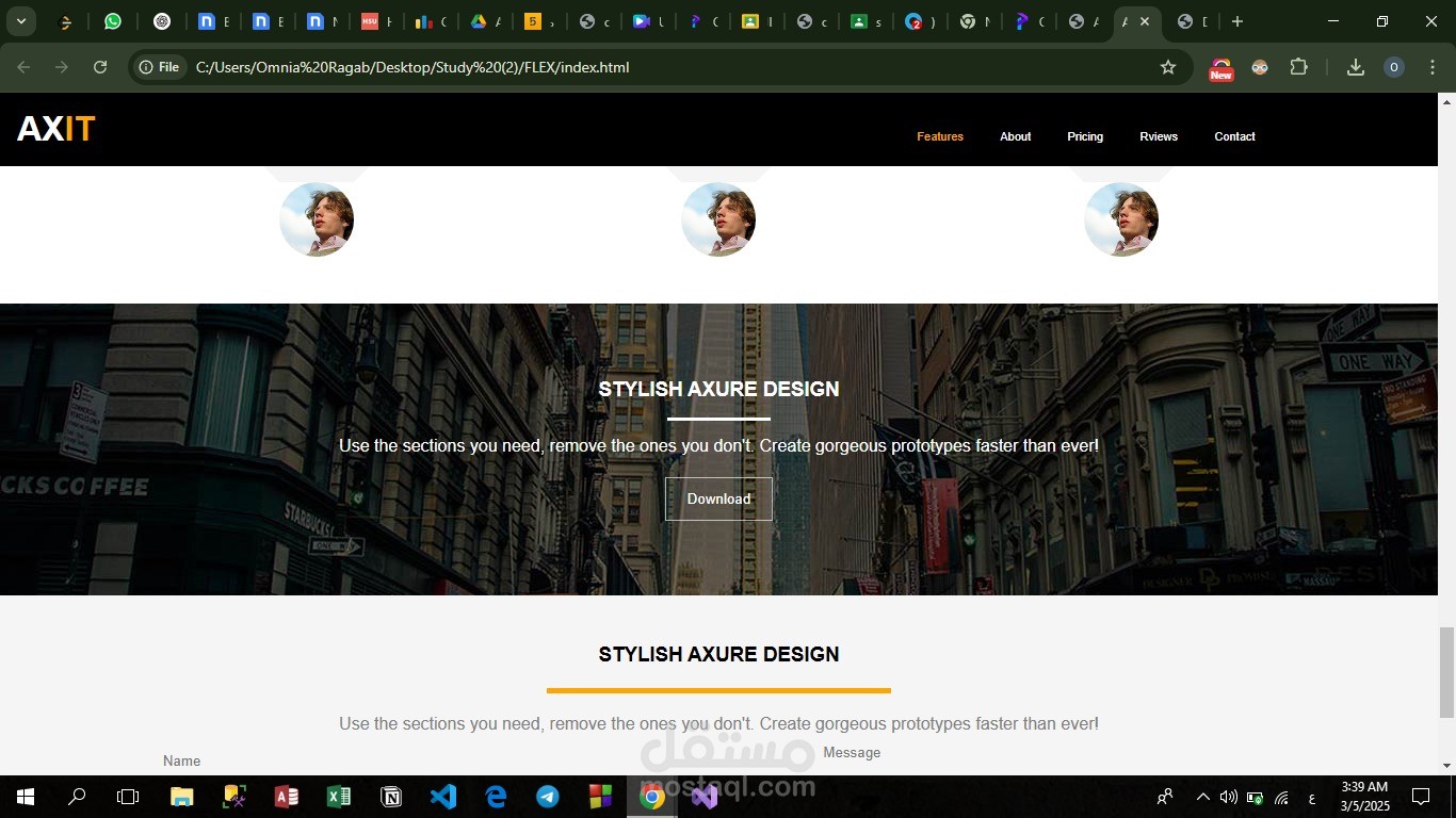 تصميم واجهة موقع شركة AXIT المتخصصة في Stylish Axure Design بشكل عصري وأنيق باستخدام HTML, CSS, و Bootstrap.