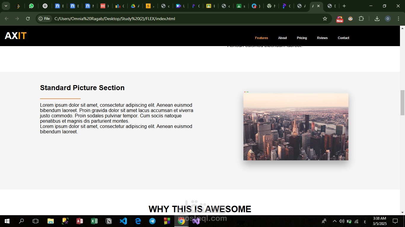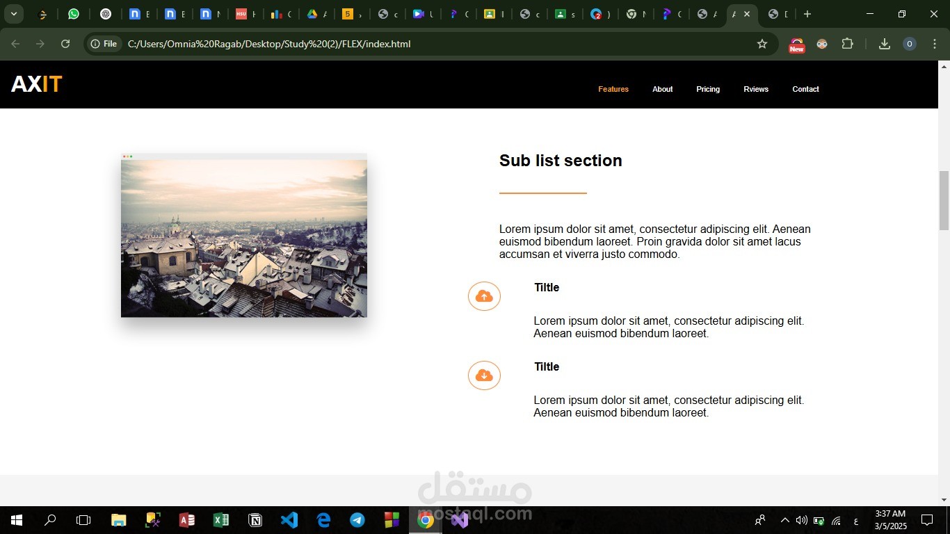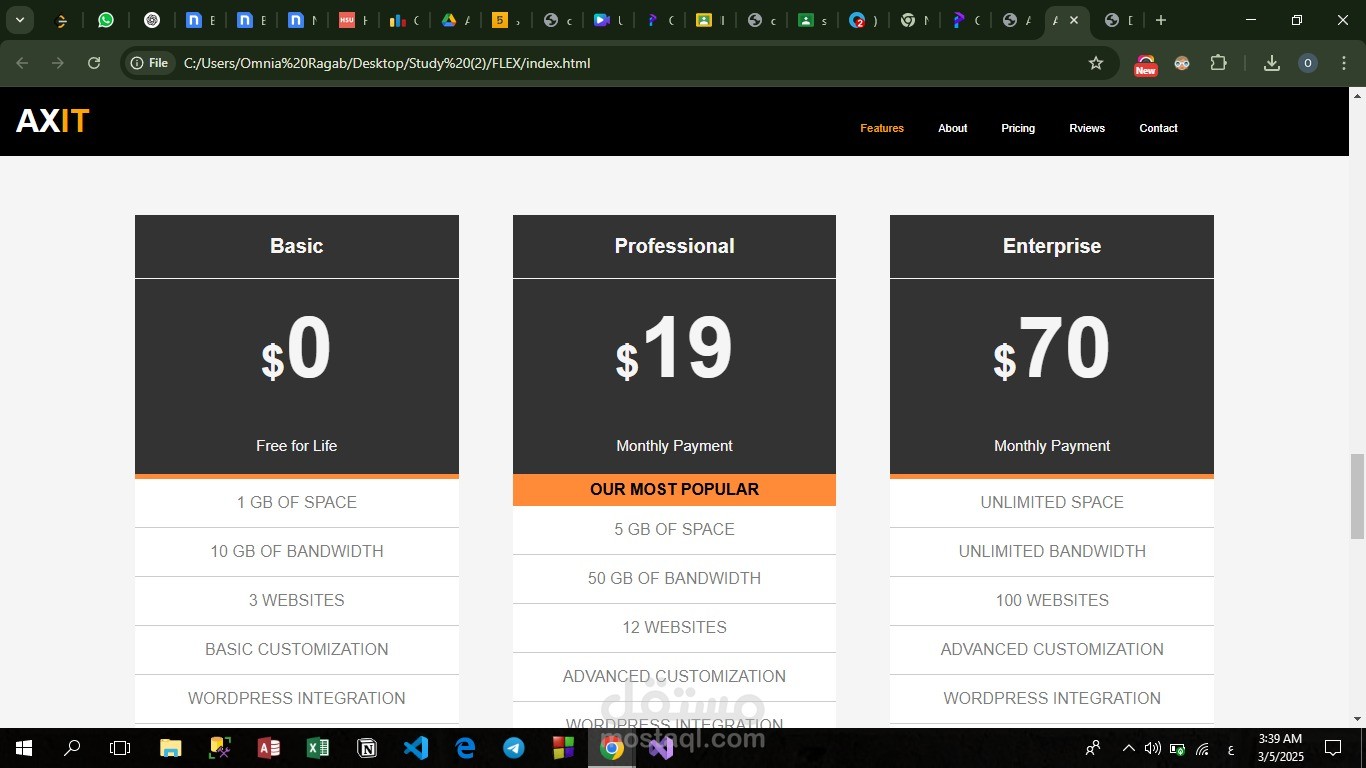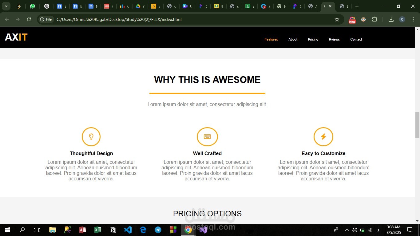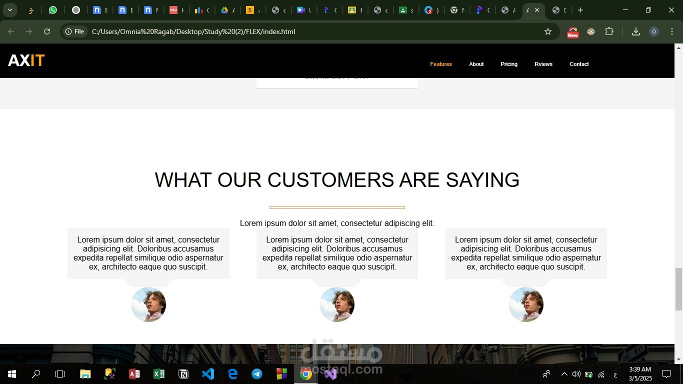 تصميم واجهة موقع شركة AXIT المتخصصة في Stylish Axure Design بشكل عصري وأنيق باستخدام HTML, CSS, و Bootstrap.