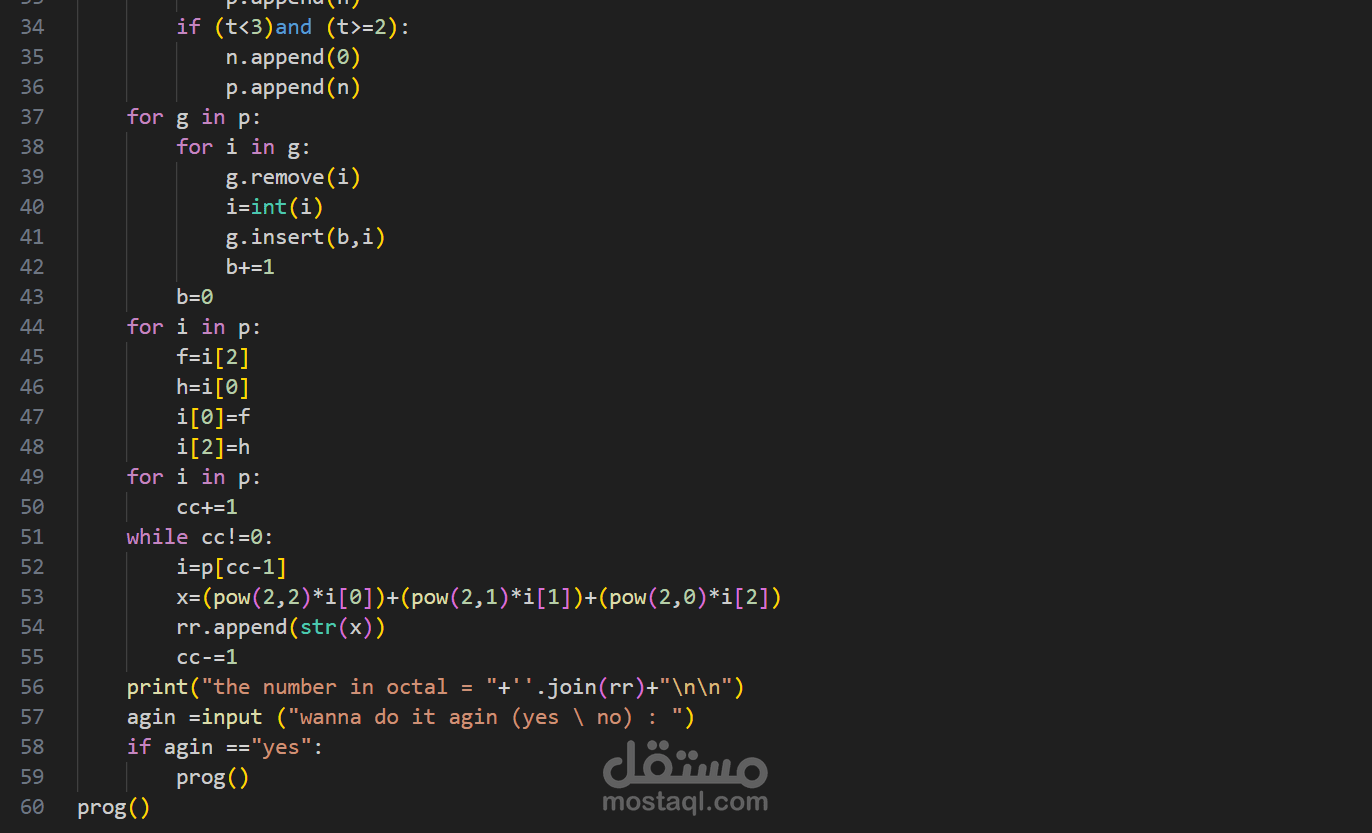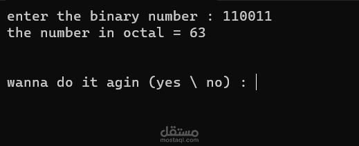 يقوم هذا الكود بتحويل الارقام من النظام الثنائى للنظام الثمانى