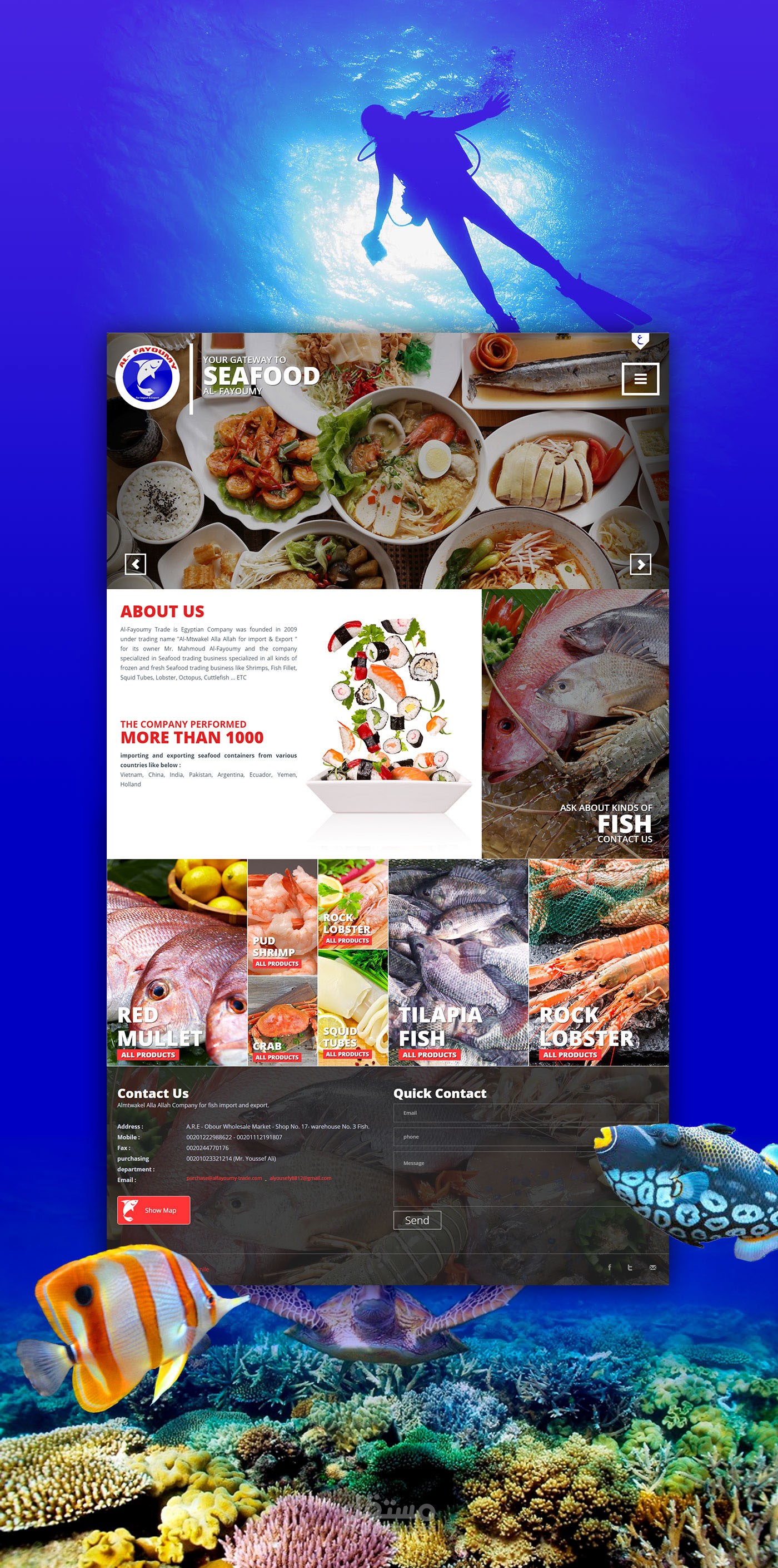تصميم ويب سيت شركة الفيومي لتجارة الأسماك