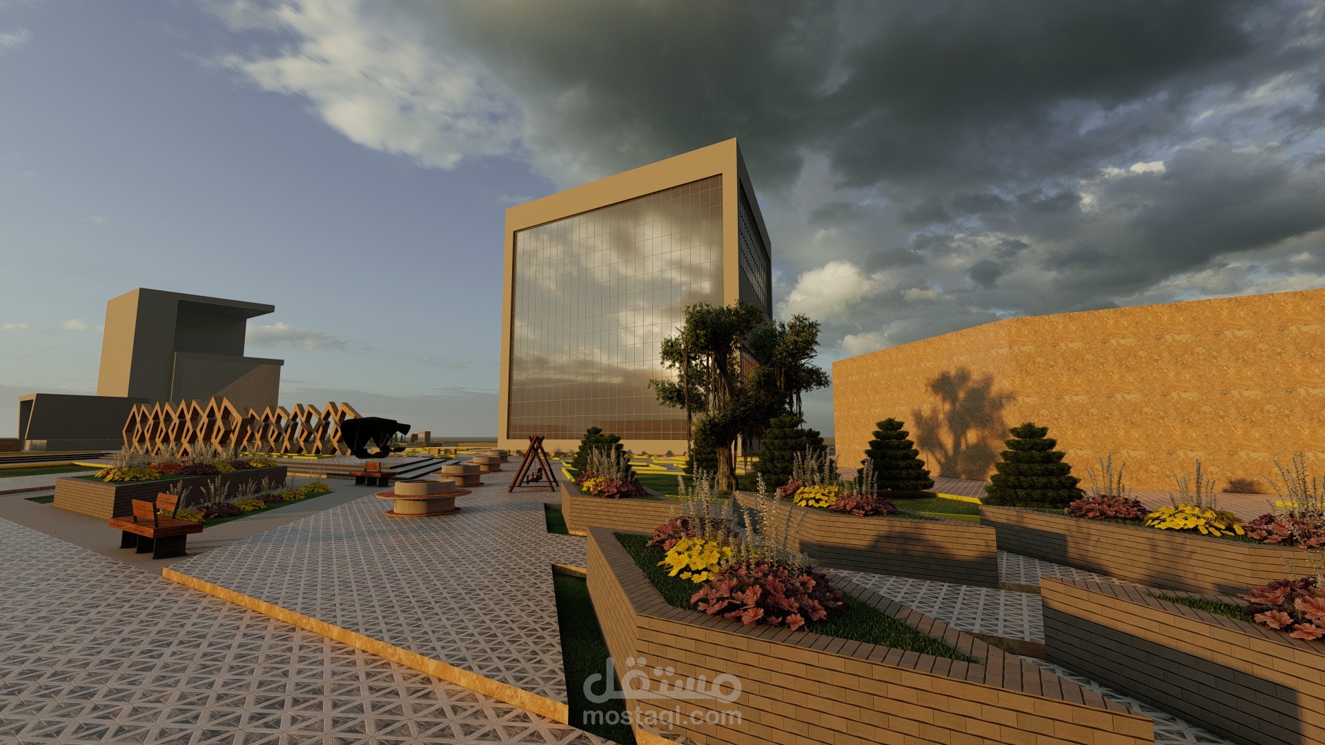تصميم حضري لمنطقة الحصبة في صنعاء صممت بطابع مودرن لطيف والفكره التصميمة كانت على شكل الجناح دعم لمبنى اليمنية الذي تعرض للحرق في تلك المنطقه تم استخدام الاوتوكاد في التصميم ال2دي او التخطيط ال2 دي تم استخدام برنامج الريفت بالرفع المعماري او بال3 دي تم استخدام برنامج اللوميون في الرندر او الاخراج الواقعي.