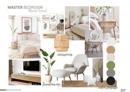 بعد سماع رغبات ومتطلبات العميل توصلنا الي moodboard المراد و تم تصميم الغرفة بناءا عليها